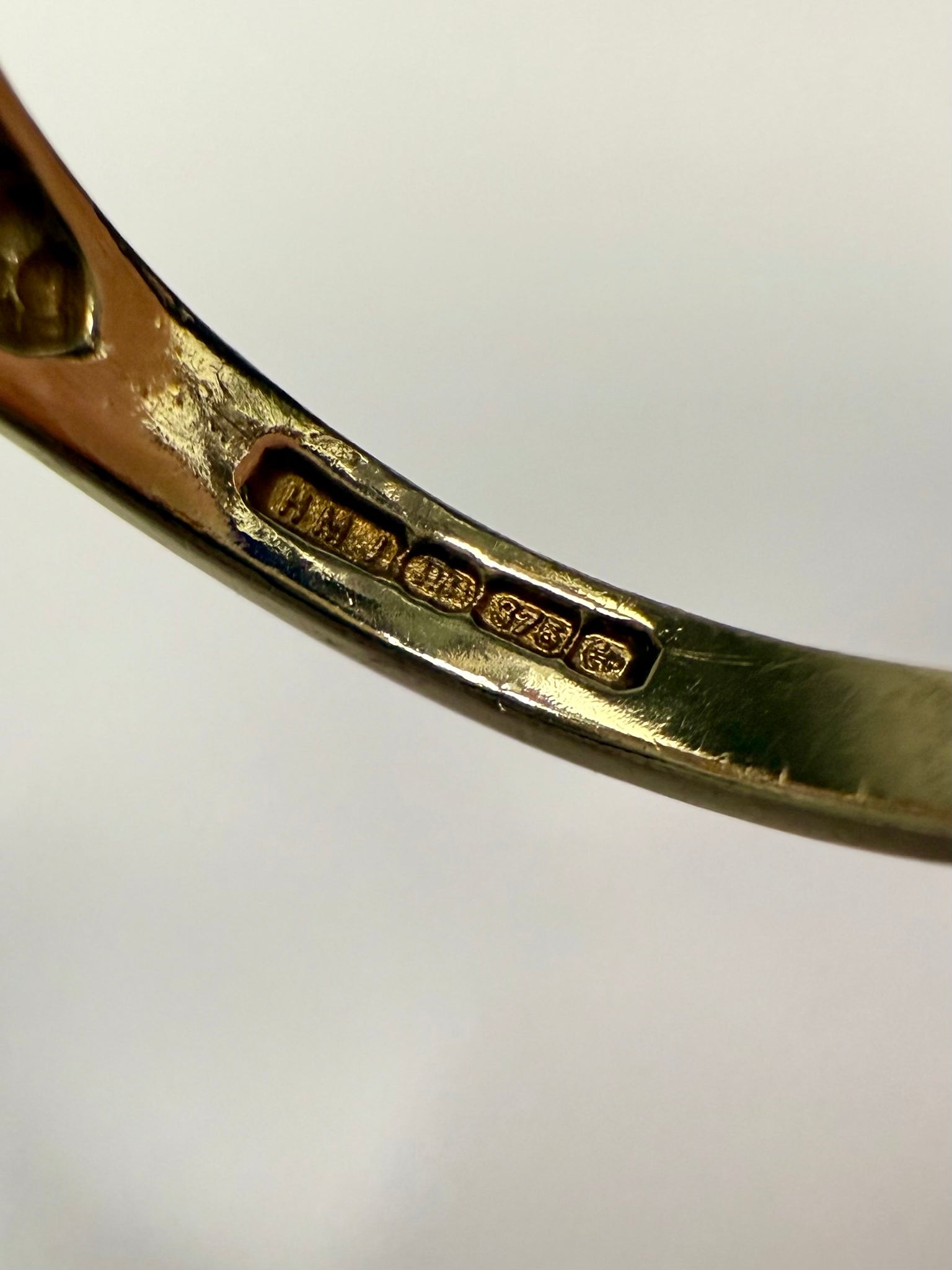 Here we have a 9ct gold ring with a cluster of CZ stones in the centre. This is a size O and weighs 2.55 grams.