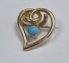 9CT Gold Witches Heart Brooch with Turqouise Stone