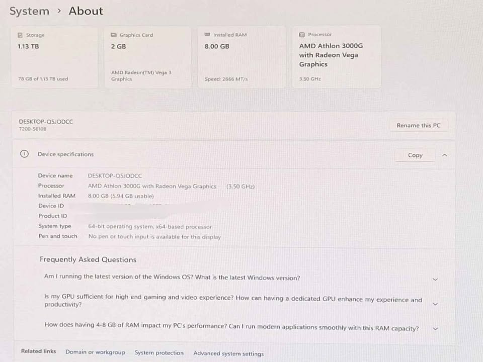 Custom PC Full Setup, W11, AMD Athlon 3000g / Vega 2gb / 8gb RAM / 256gb SSD / 1TB HDD,,,, HP Beats Monitor, keyboard and mouse