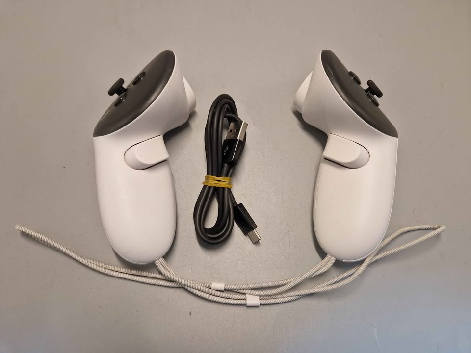 Meta Quest 3S VR Headset (With Controllers) - 128GB perfect working condition, good physical condition, strap has some wear and yellowing but above average condition Product Description Thousands of immersive experiences Experience MR gaming, fitness and entertainment, including your favourite apps, such as Facebook, Instagram and WhatsApp all within the headset. See the difference With Meta Quest 3S, virtual objects come in the room around you in high-definition resolution. Immersive experiences, with brilliant colour and rich surround sound. Get hands-on Engage with precision controllers that act as a extension of your hands, tracking capabilities mean that you can also go controller-free. The magic of mixed reality Meta Quest 3S transforms your reality so that you can do everything that you love in different ways. Mixed reality Delivers high-fidelity views of your surroundings while you see virtual objects appear in your physical space. Depth and room mapping using great AI and computer vision gives you freedom to move throughout your space and interact with virtual characters or objects in the room around you. Audio Quest 3S audio has reduced distortion, give bass and better spatial audio than Meta Quest 2. Meta Quest 3S is compatible with USB-C headphones. Haptics TruTouch variable haptics provide tactile feedback, enabling a more holistic range of in-experience sensations so you can touch, move and react realistically within virtual environments. Direct touch hand tracking Great hybrid computer vision and machine learning sensors follow your gestures, with four IR cameras and two RGB cameras to enable controller-free navigation and more intuitive control. Two flood LEDs for illumination and more reliable hand interactions across environments and lighting conditions. Simply move your hands to tap, scroll, navigate and play. Headset Features: Optics technology 1832 x 1920 pixels per eye 773 PPI pixel density 20 PPD 72/90/120 Hz refresh rate 96 degree horizontal and 90 degree vertical field of view Fresnel lens 3-position IAD adjust RGB Colour gamut Memory 128GB internal memory 8GB RAM Hardware Snapdragon XR2 Gen2 chipset General: 514 g Controller Features: General: Controller tracking Hand tracking Haptics Features: General: 4 MP, 18 PPD Colour Pass-through fidelity Wi-Fi 6E USB Type-C interface Backwards compatibility 514g