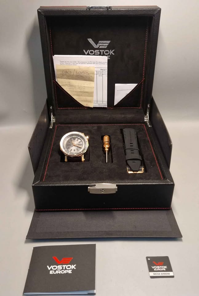 Vostok-Europe Lunokhod-2 Automatic 300 Meter Dive Watch with Tritium Tubes perfect working condition, almost perfect physical condition, has smallest of dent nest to numbers on side (pictured)