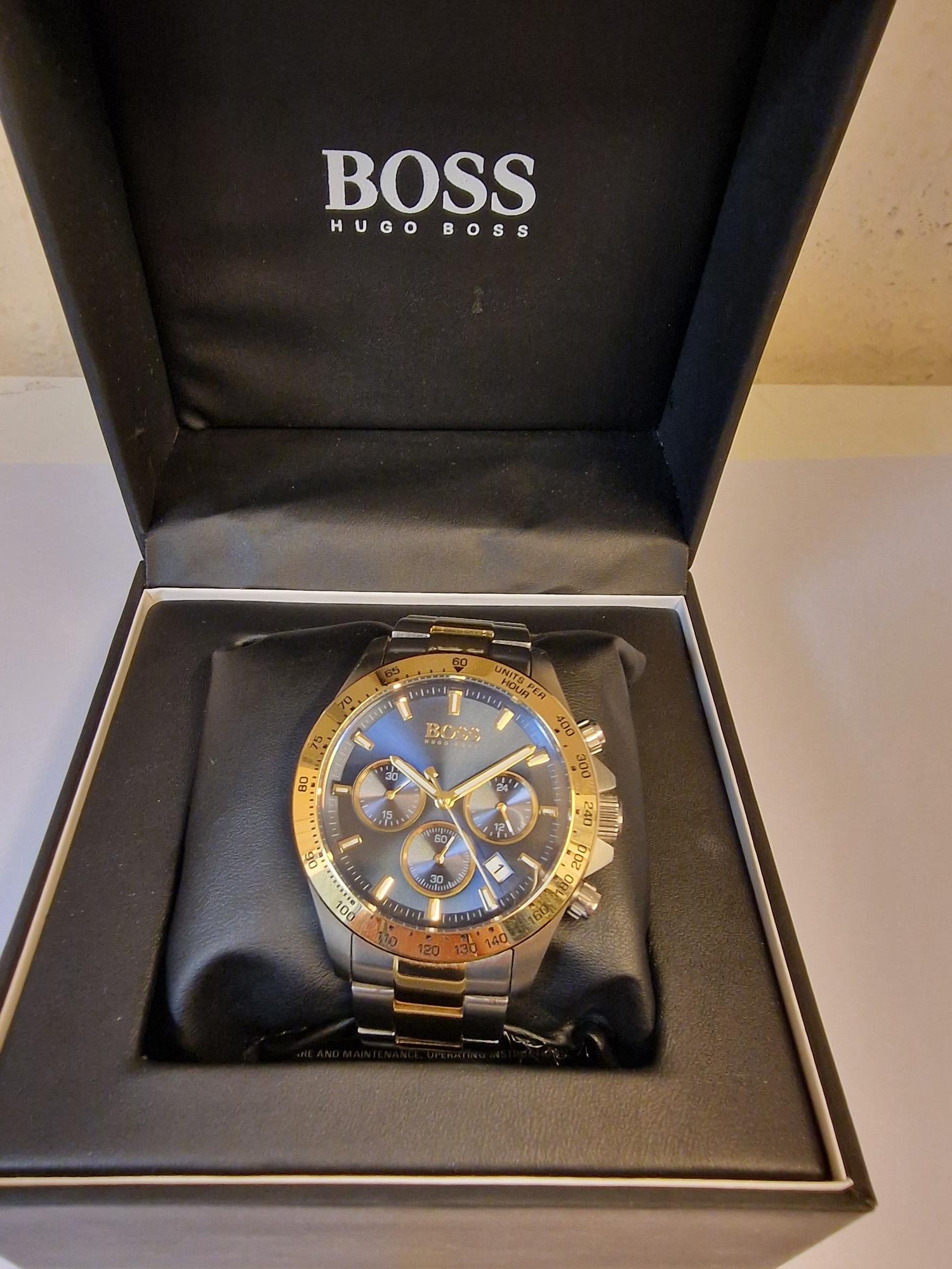 Part of the Sport Lux range from Boss this robust timepiece offers a stylish yet athletic finish to your everyday look. Crafted in stainless steel the watch features a two colour baracelet and a contrasting navy blue sunray dial that is adorned with a chronograph subdial and a date window at 4 oclock. The dial is finished with luminescent hour markers and hands. The piece is finished with a push deployment clasp fastening for easy wear and safe removal.