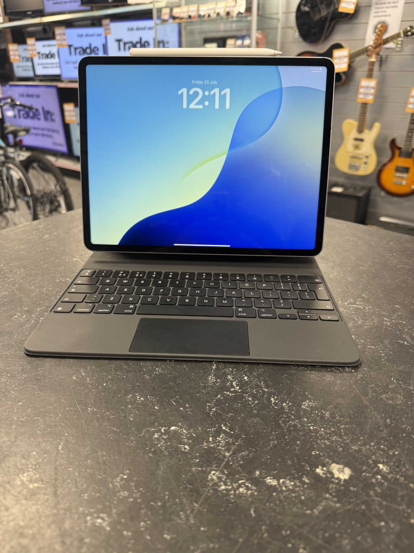 • Wi-Fi and cellular • unlocked • 512gb • 12.9" display • includes Apple Pencil GRADE B - unboxed , comes with Apple case and keyboard , no clear marks to screen or back