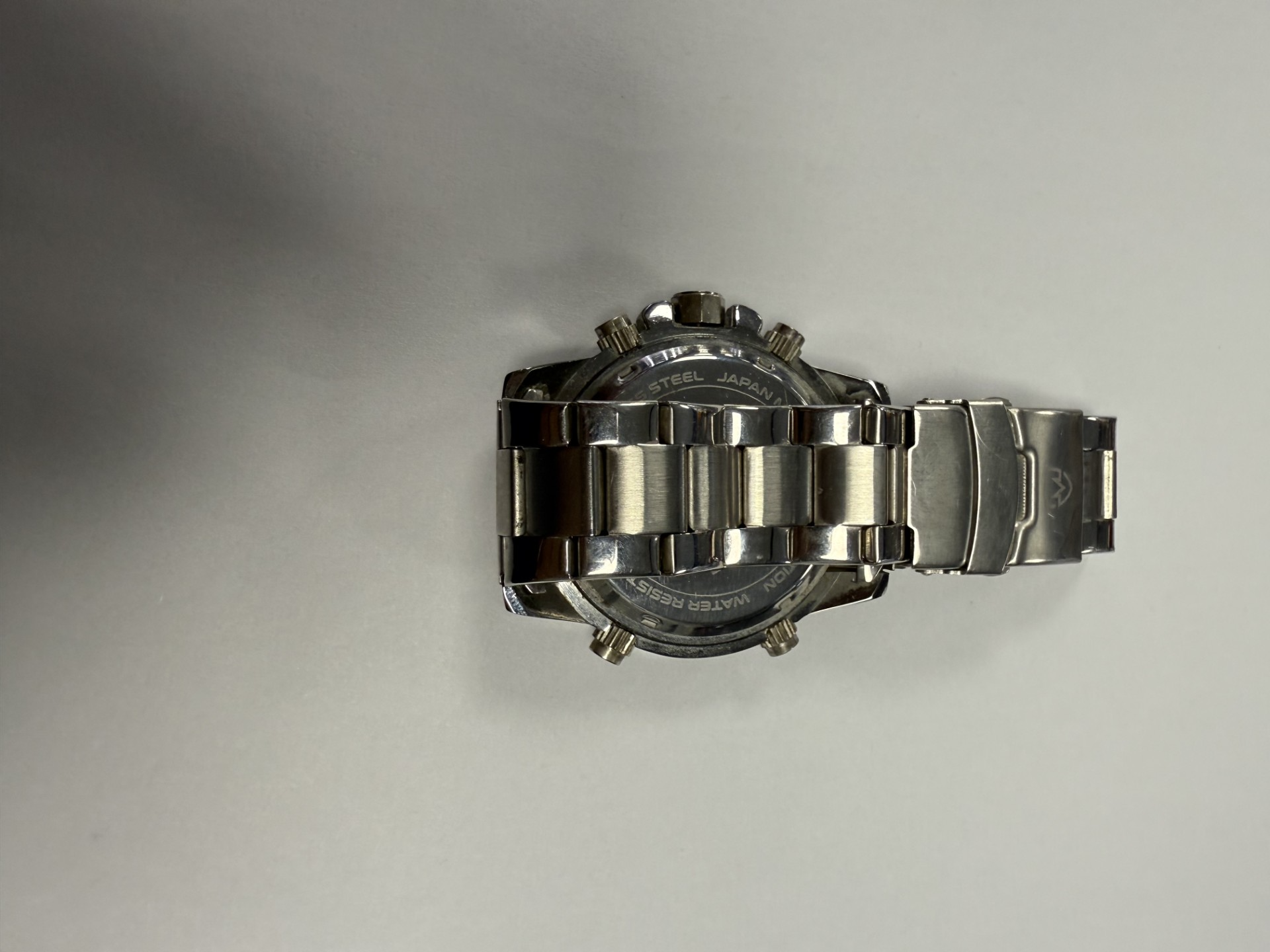 • water resistance 30M • chronograph • stainless steel • unboxed , no extra links has some cosmetic wear with scratches to strap, no clear scratches to screen