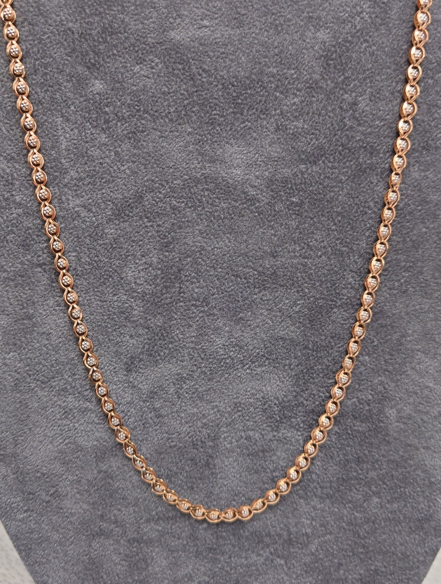 A stunning double sided decorative chain, beautifully crafted in 14ct yellow & white gold, The open double layer oval links feature a flower style in white gold, giving the appearance of clear stones. A very pretty & feminine chain that will make a treasured gift for any occasion.