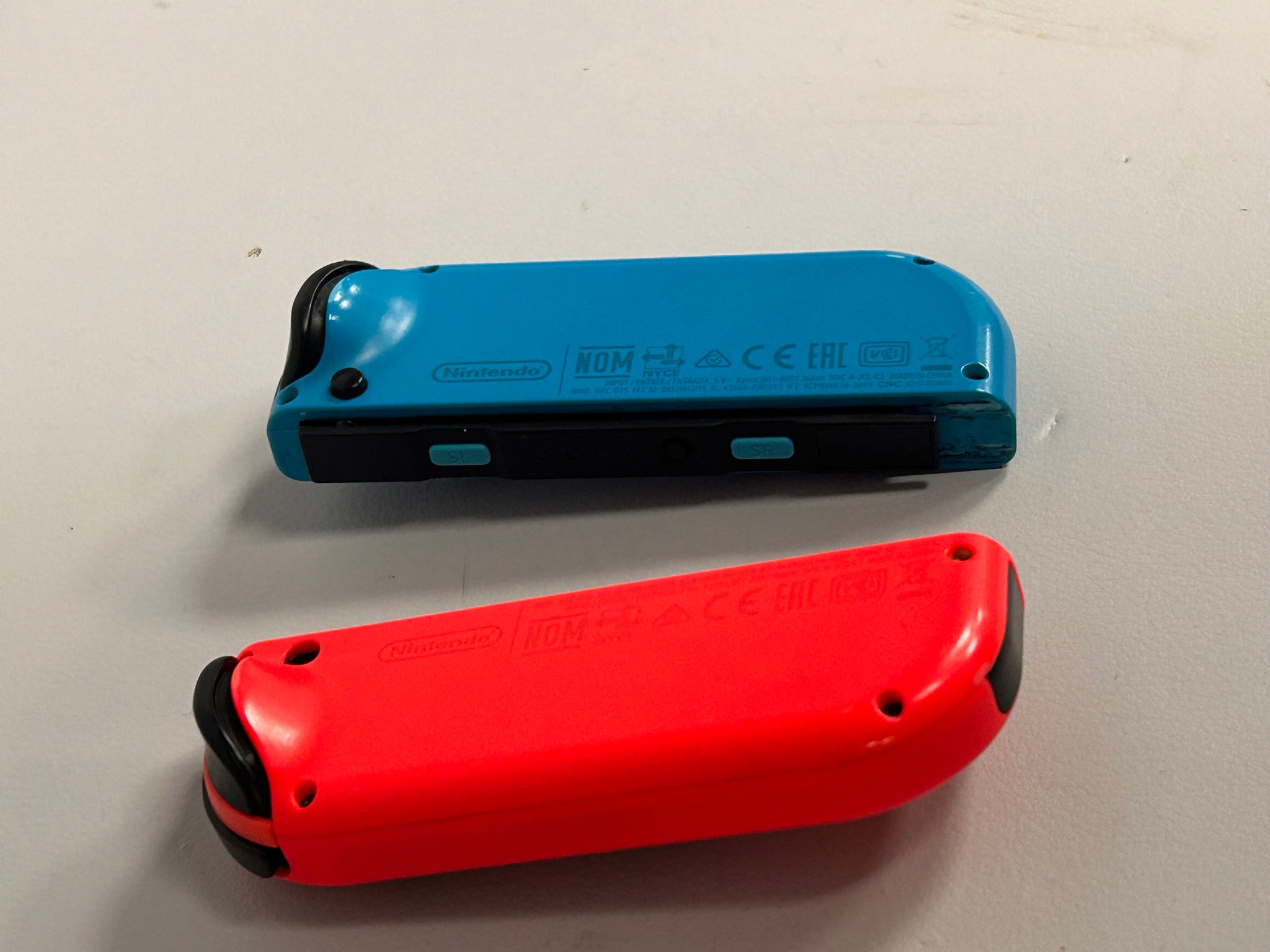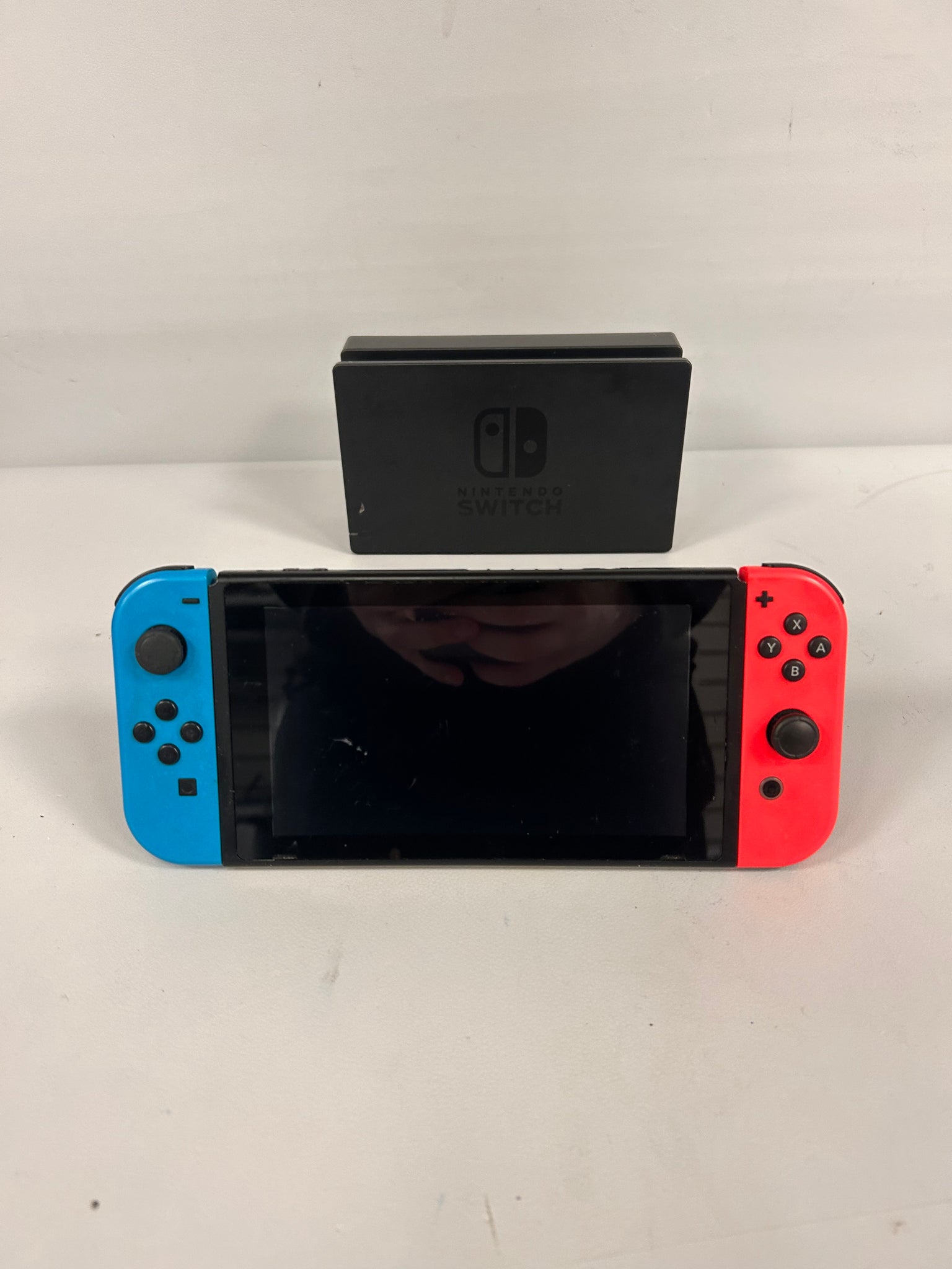 Nintendo Switch Console *Faulty eject button* In fair condition with charger dock joycons *Red joycon eject button missing still works*