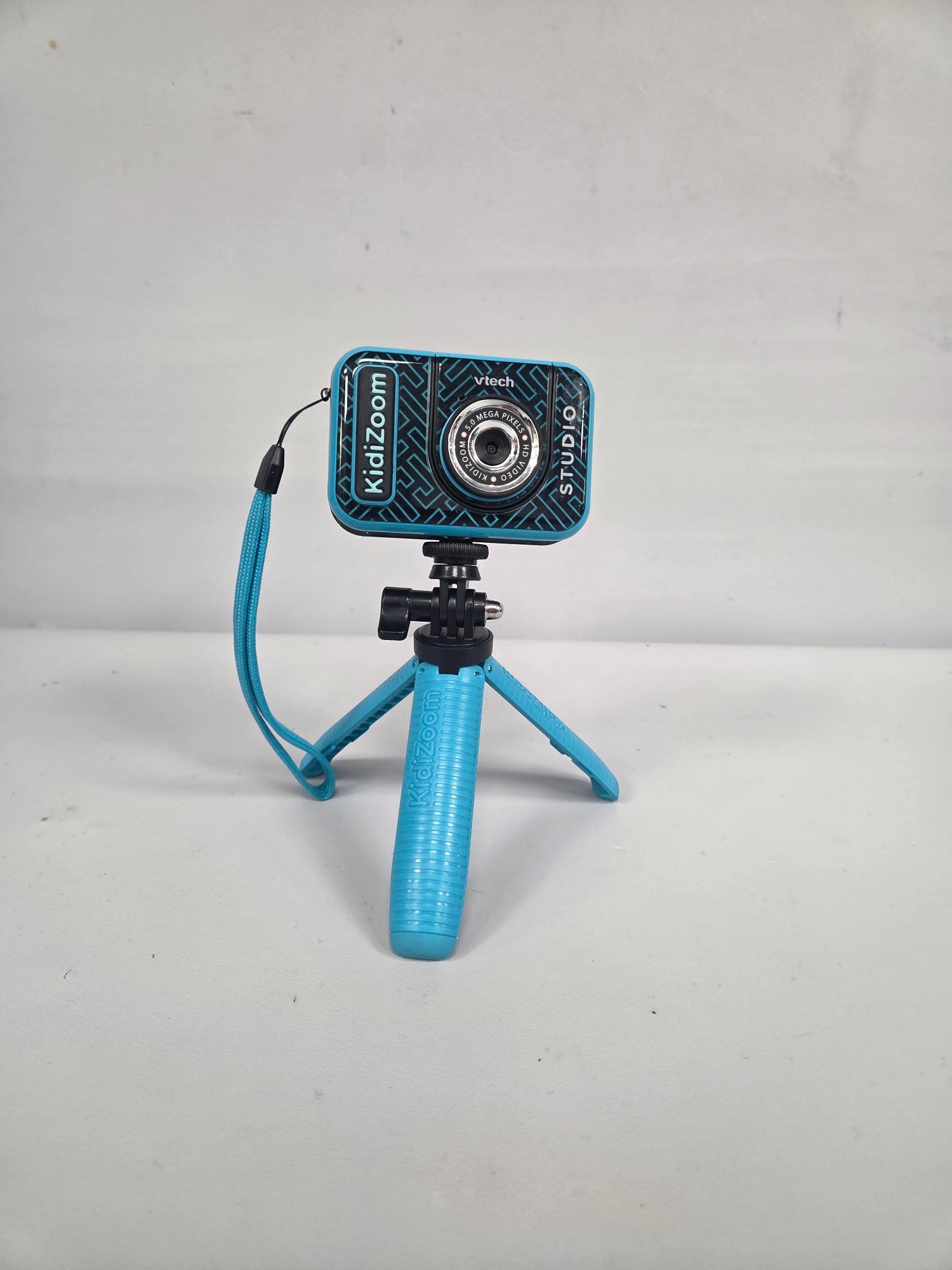 Be the star of your own video universe with the KidiZoom Studio by VTech! Complete with green screen to create special effects, this high-definition video camera kit comes with everything you need to create the show of your dreams. Set up the included tripod to film your very own unboxing videos or use the flip-up lens and handle to capture the perfect on-the-move selfie video. Pretend to host a show, give tours, create disappearing illusions and trick shots, or shoot how-to videos. Includes kid-friendly video editing so you can get really creative! Swap in 20 different dynamic backgrounds such as the beach, outer space or the set of a TV show with the included green screen; from flying to disappearing the green screen will help you create your own adventures. HD video recording (720p) capability. Features a 2.4” colour LCD screen. Convertible mini tripod/ handle and wrist strap included. Also includes 6 fun games!