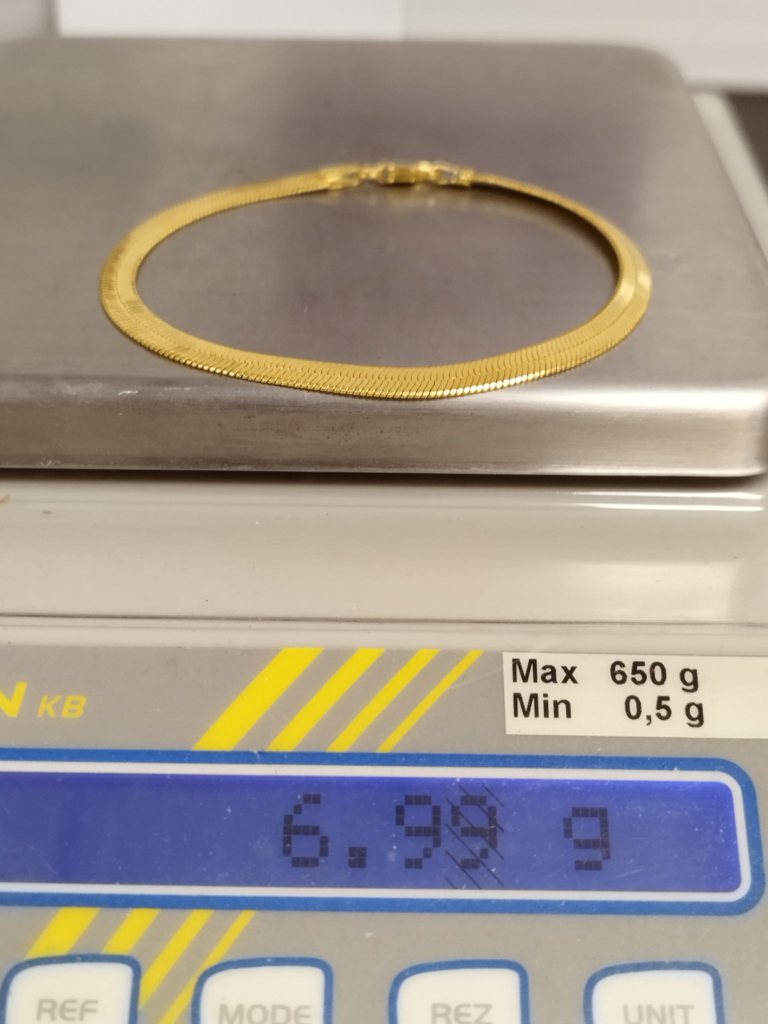 18ct Solid Yellow Gold Flat Herringbone Bracelet - 8"