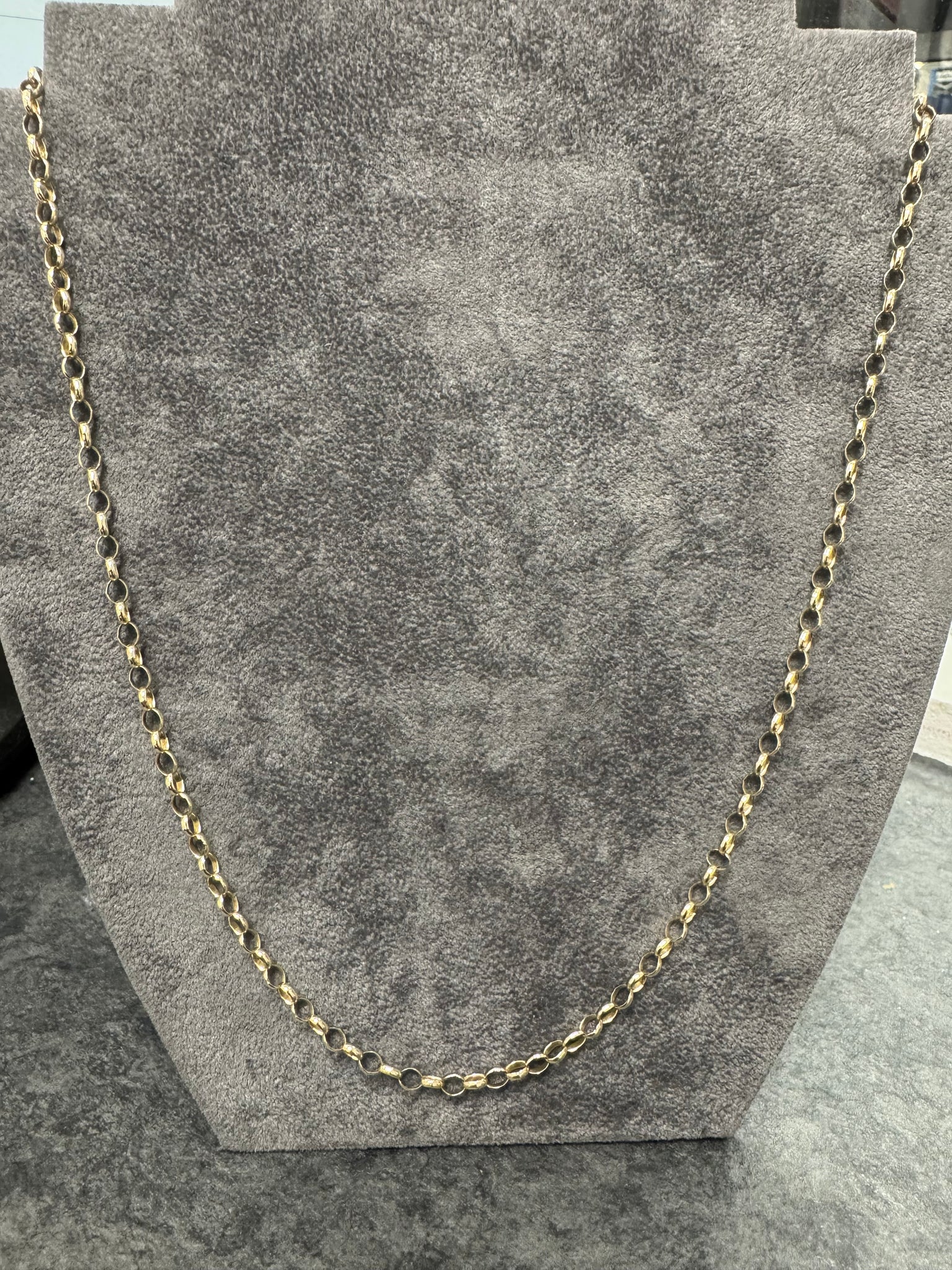 A timeless classic belcher chain crafted in 9ct yellow gold. Measuring 24 inches in length with a ring clasp fastening.