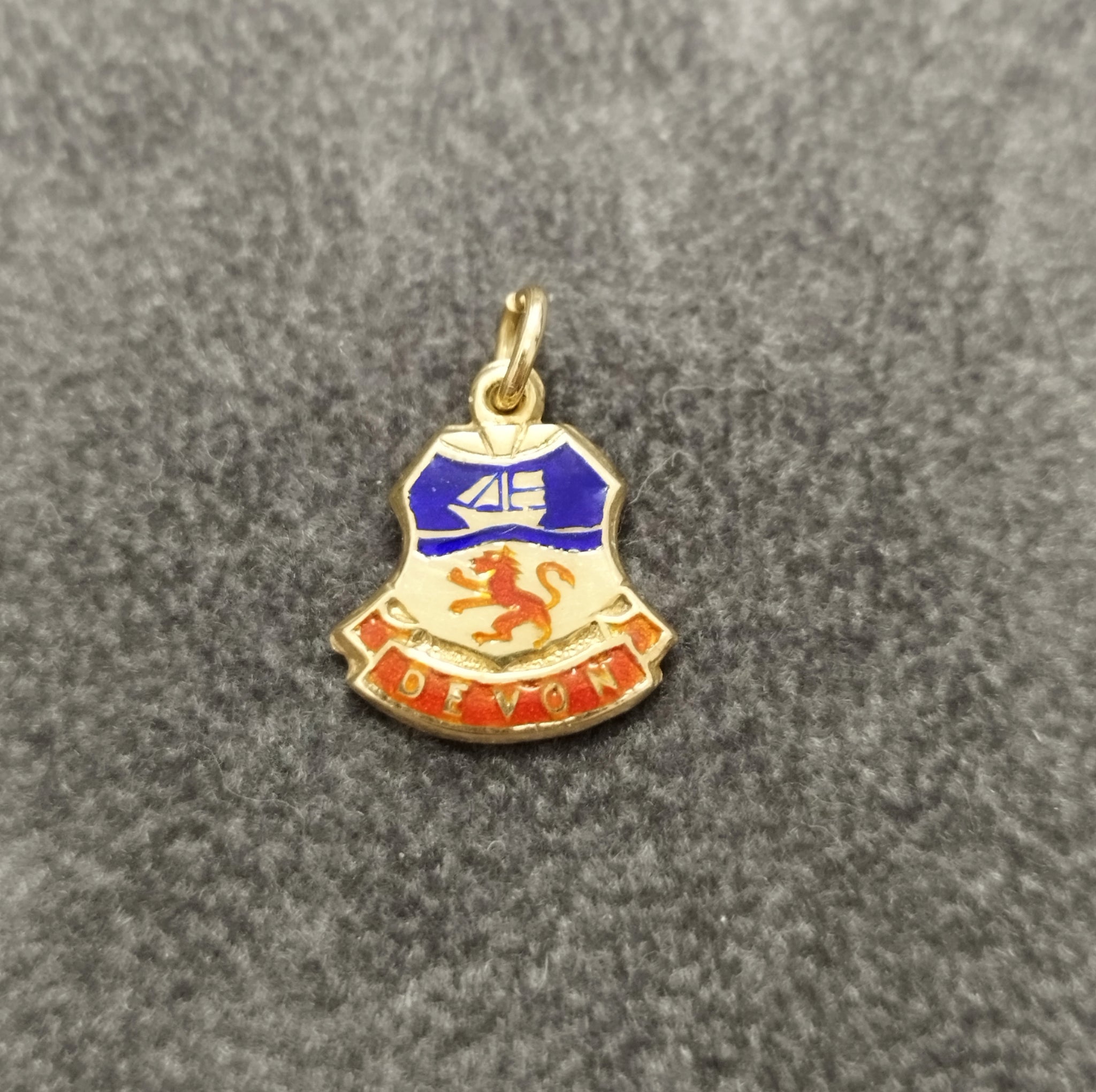 9ct Yellow Gold & Enamel 1962 Vintage Deakin & Francis 'DEVON' Crest Travel Charm