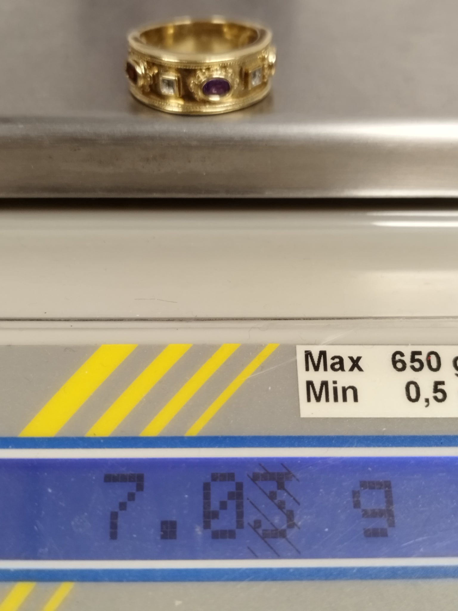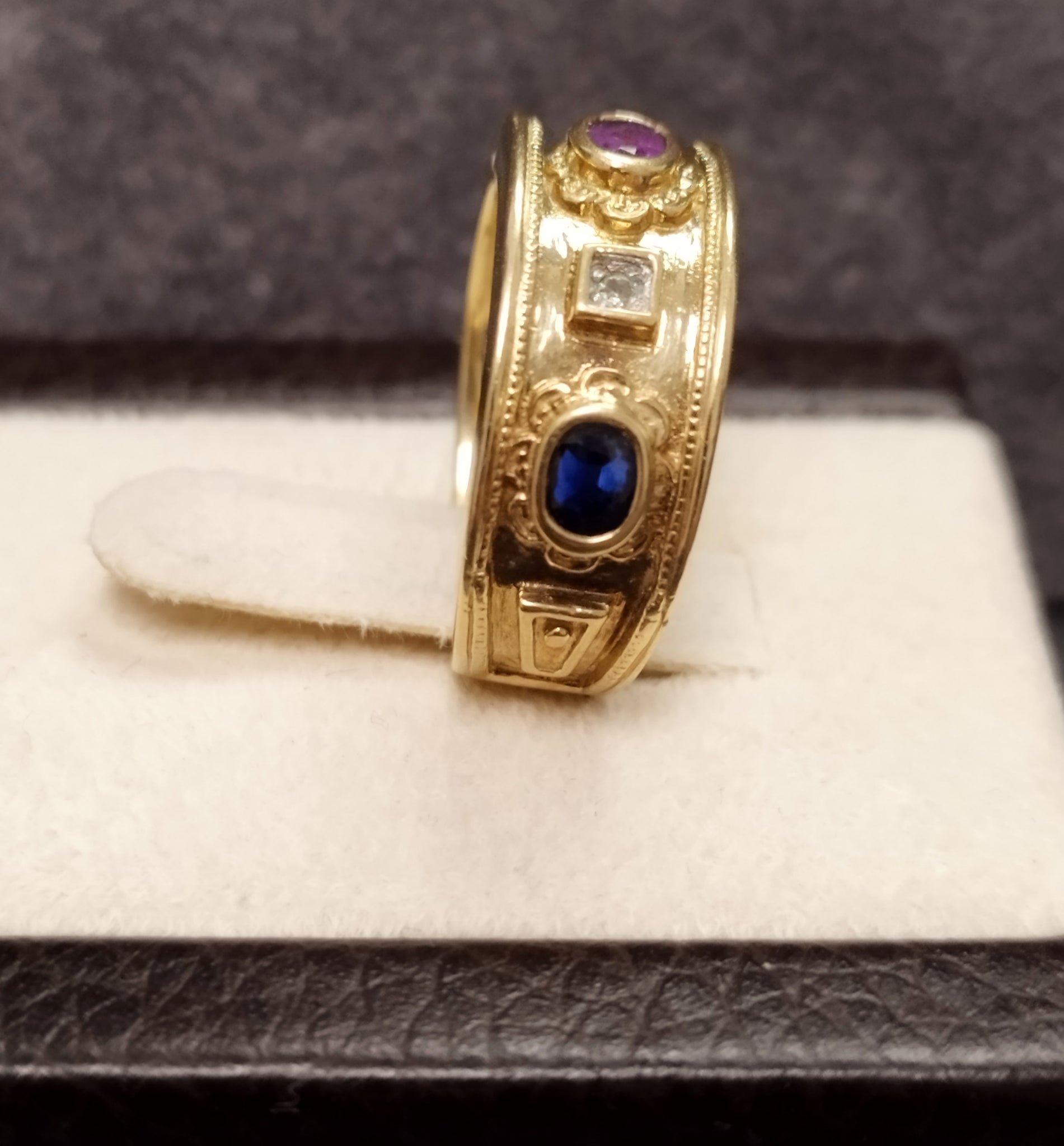 Information | 9ct Gold Diamond & Gem set Medieval Style Ring |