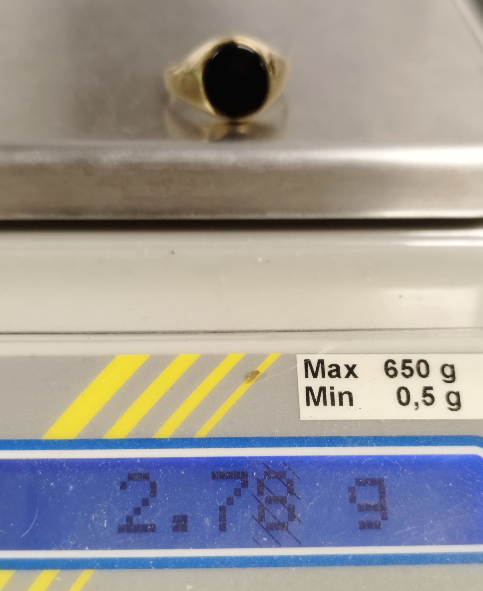 | Information | 9ct Gold Gents Black Stone Signet Ring |