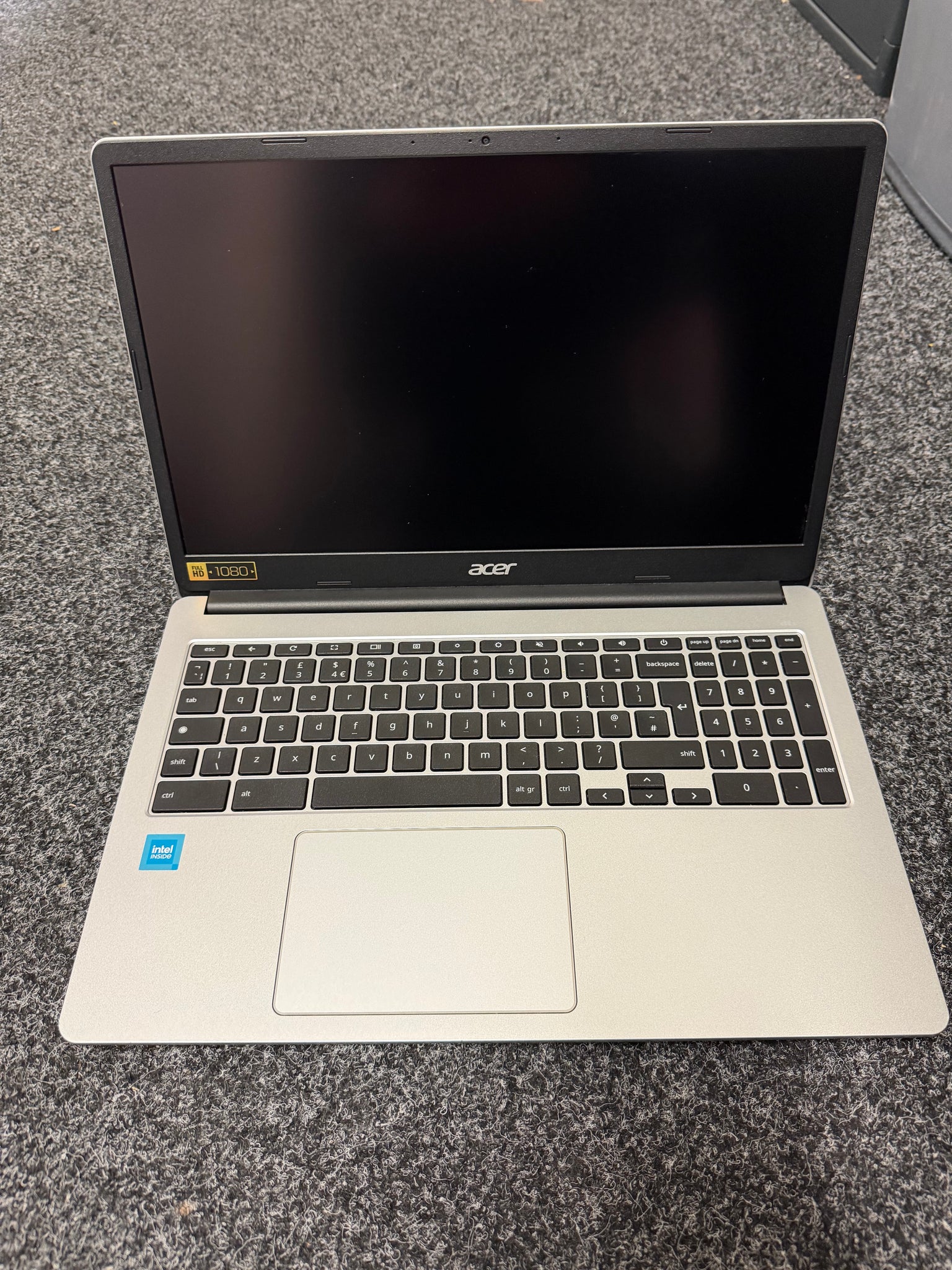 In used condition fully reset and fully functional, no charger included. Chrome os, 4gb ram, 128gb ssd.