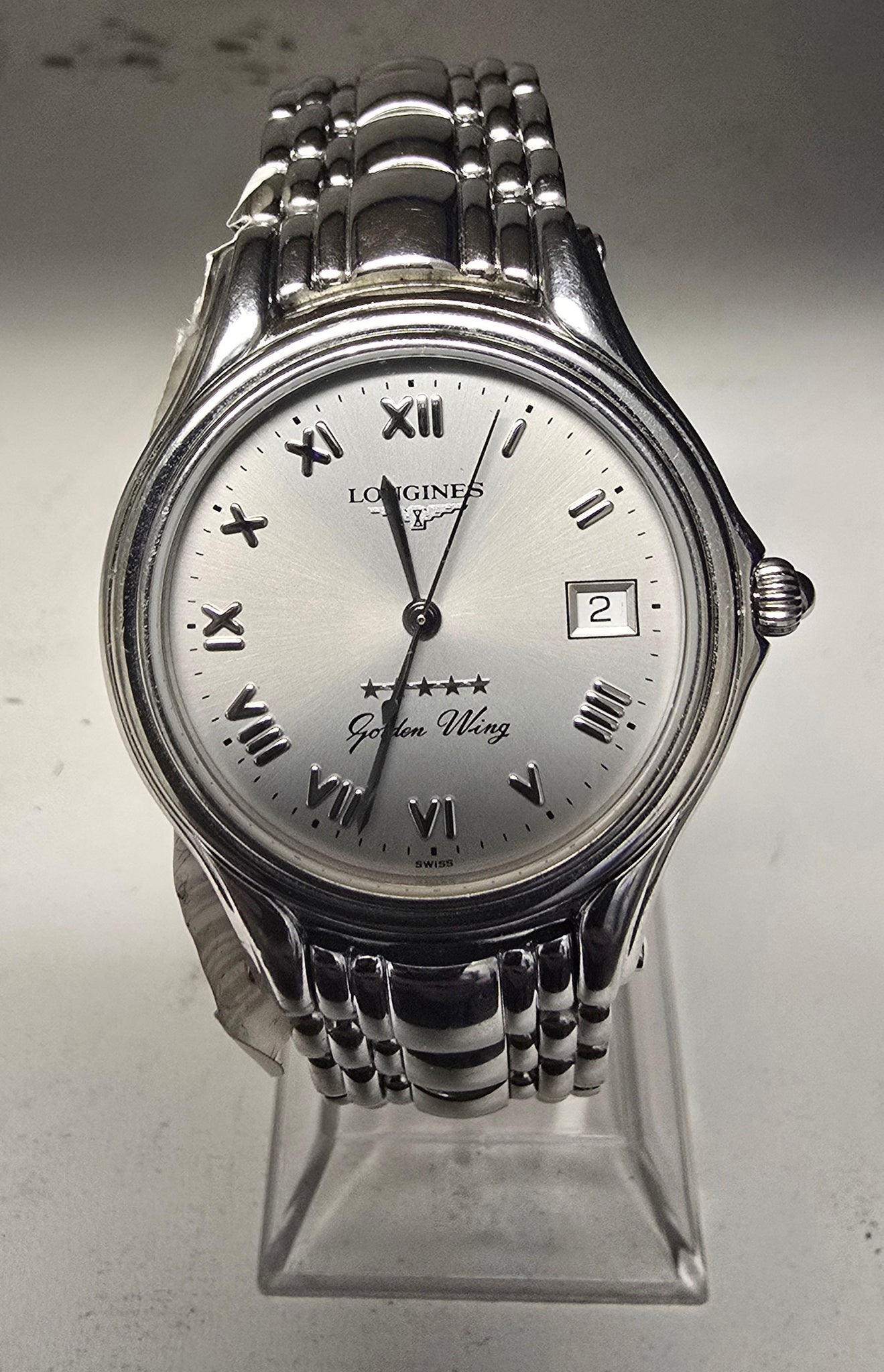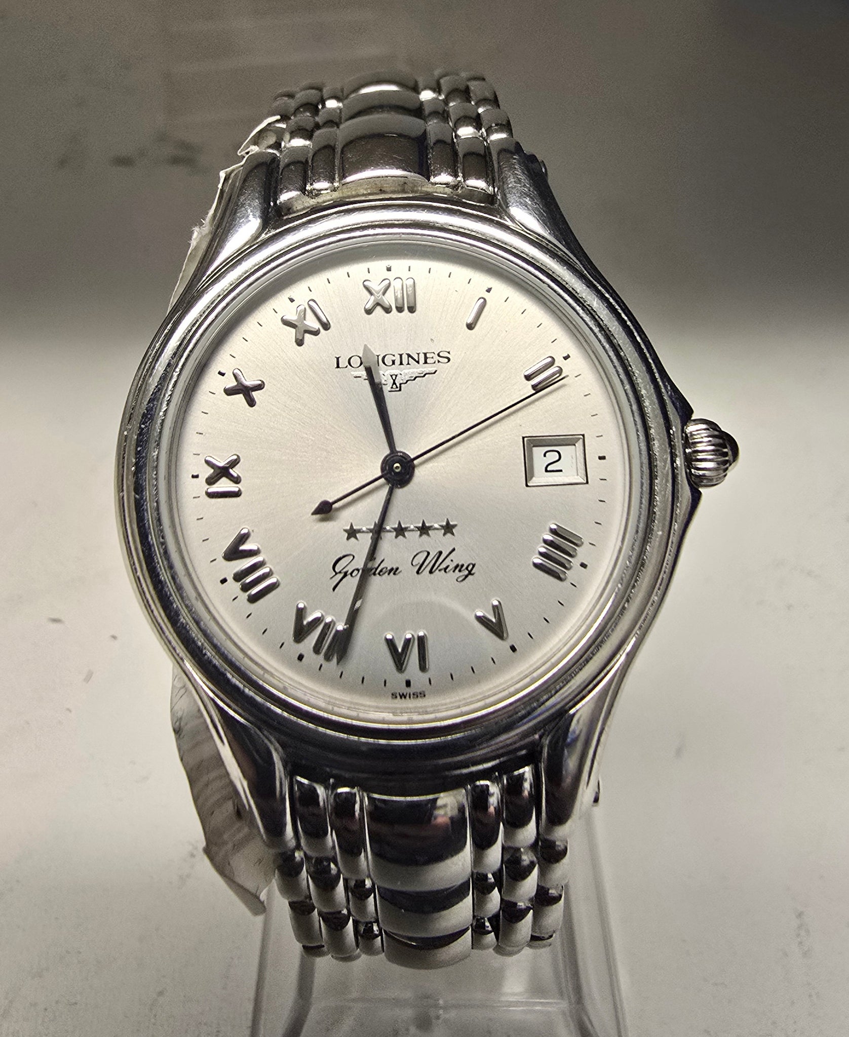 longines golden wing ladies watch 25mm unboxed, silver metal strap, ladies watch