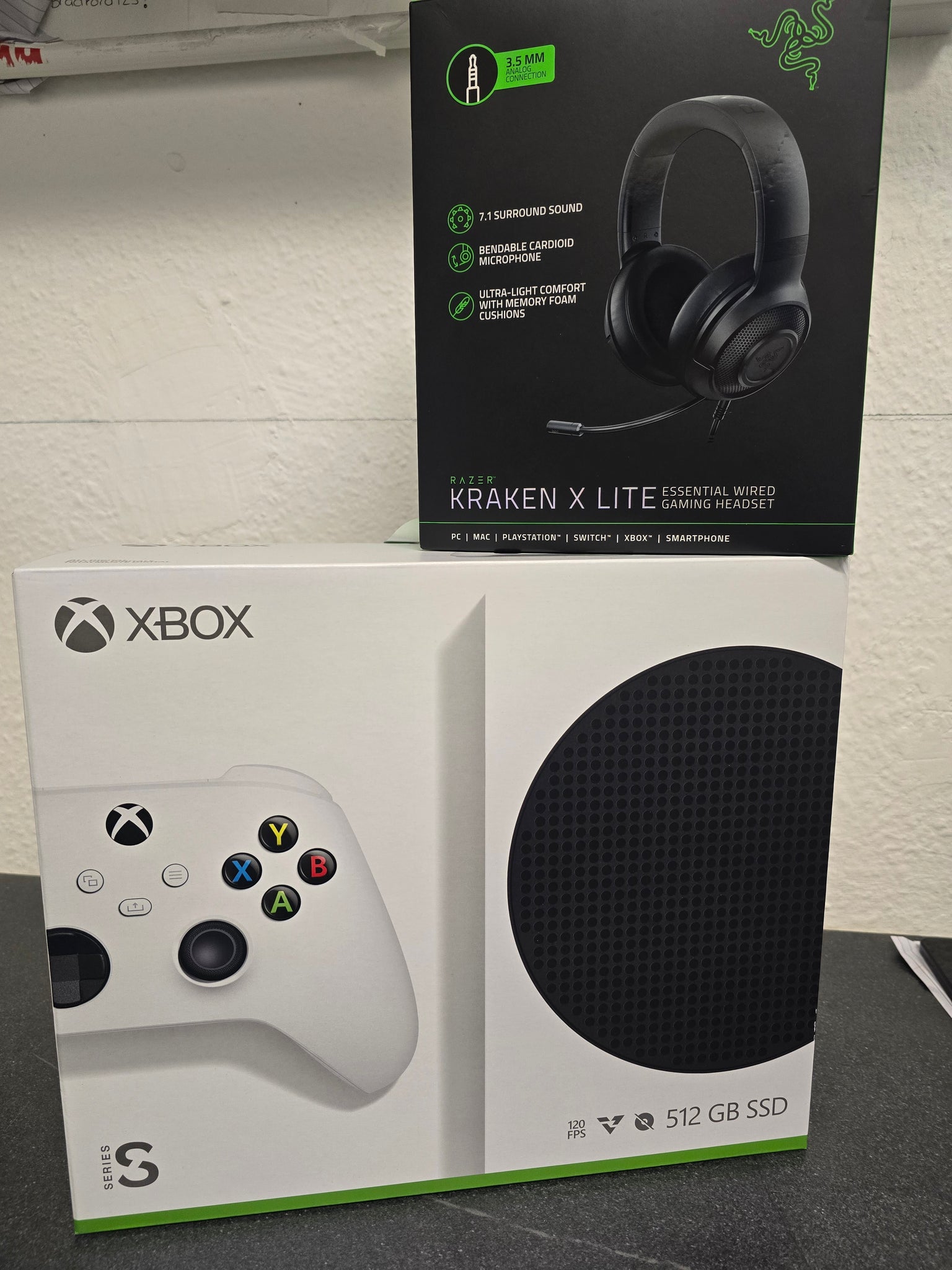 both the xbox series s and the razer kraken x lite are sealed in the box and in perfect condition