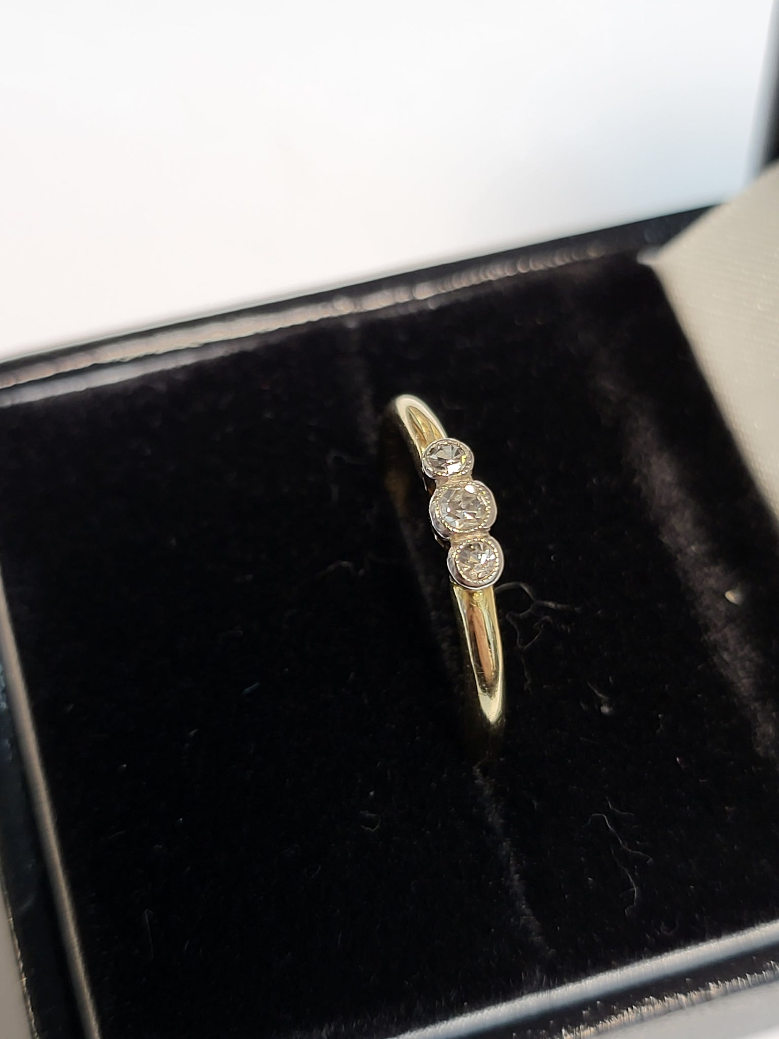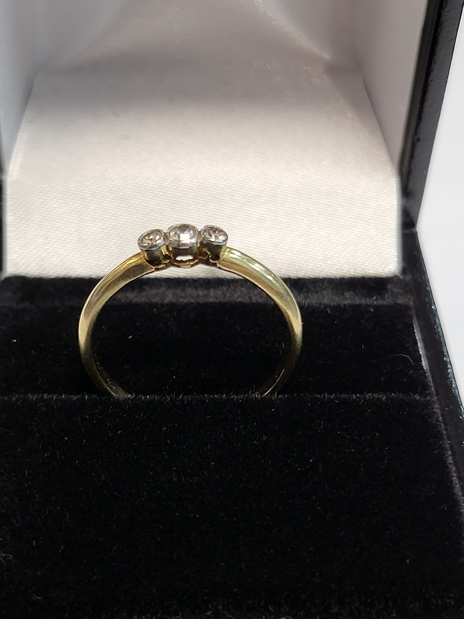 18ct Yellow Gold Ring with 3 Clear Stones - Size M - 1.85g
