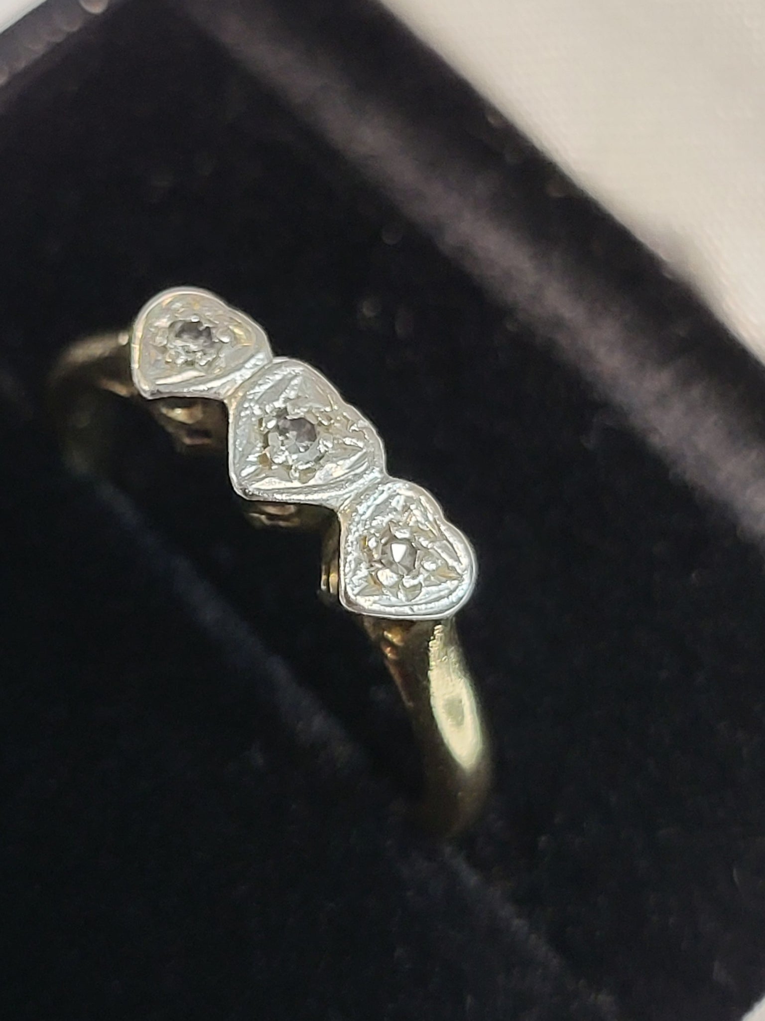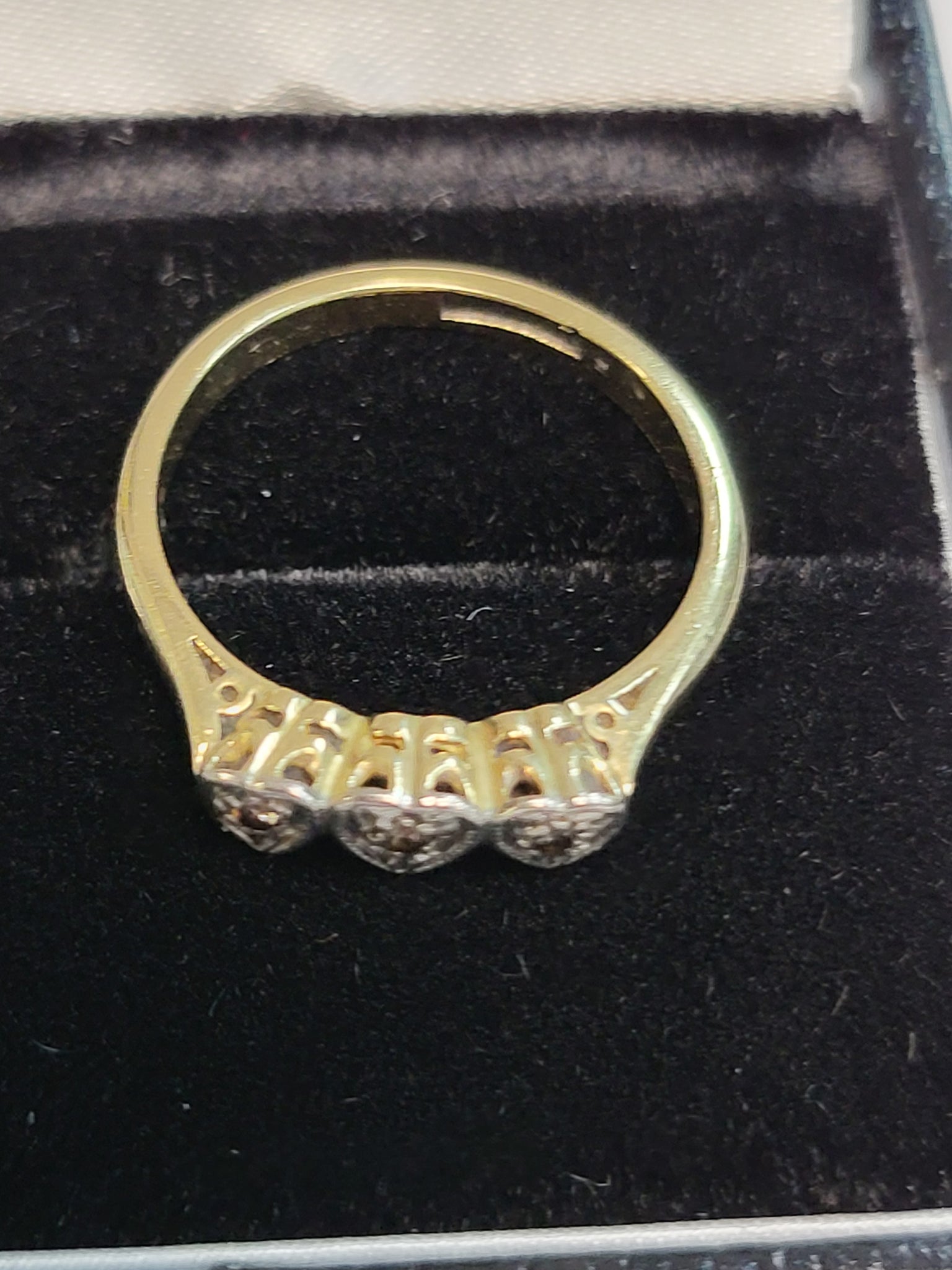18ct Yellow Gold Ring with Clear Stones (Platinum Mount) - Size L - 2.77g