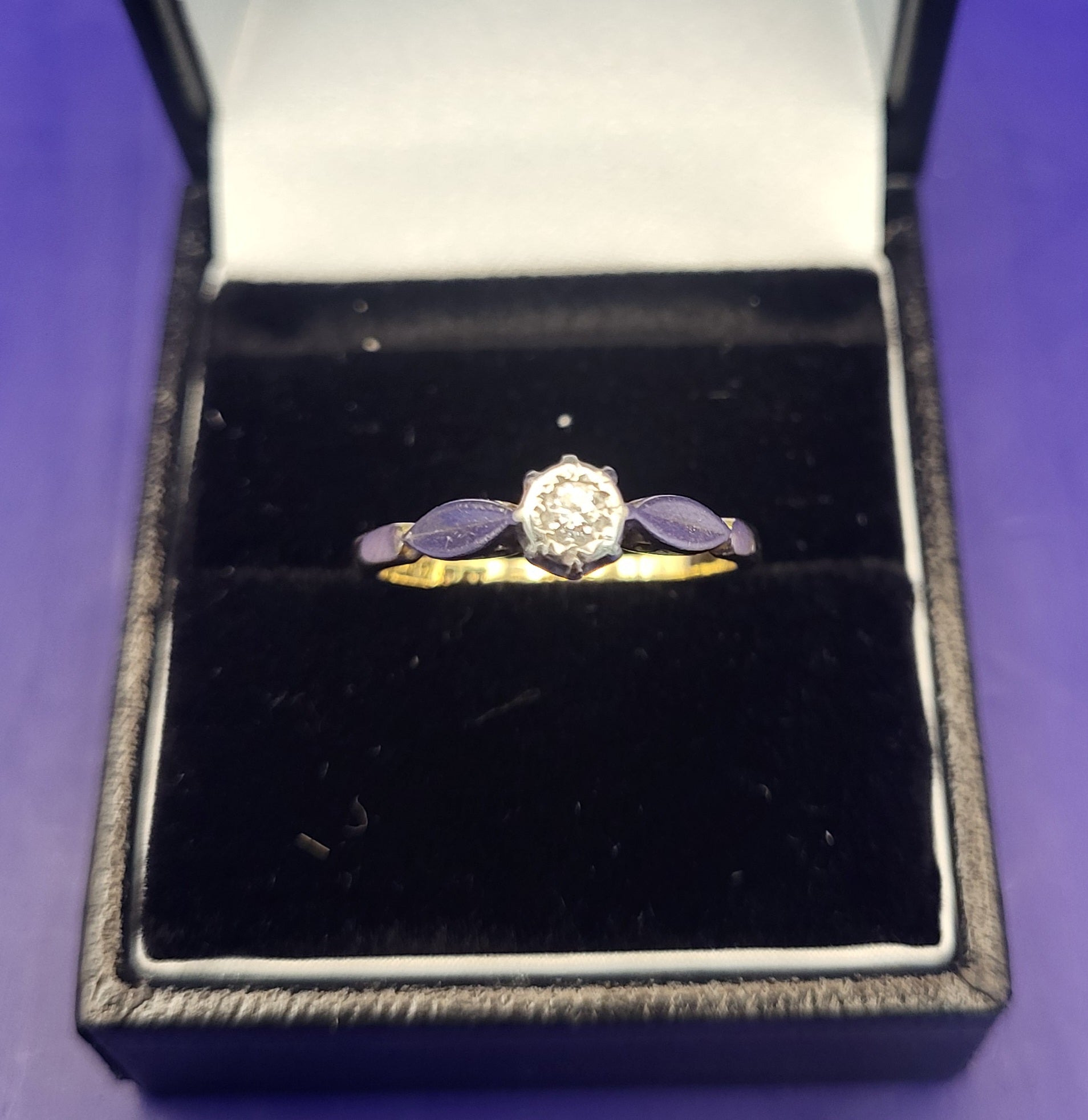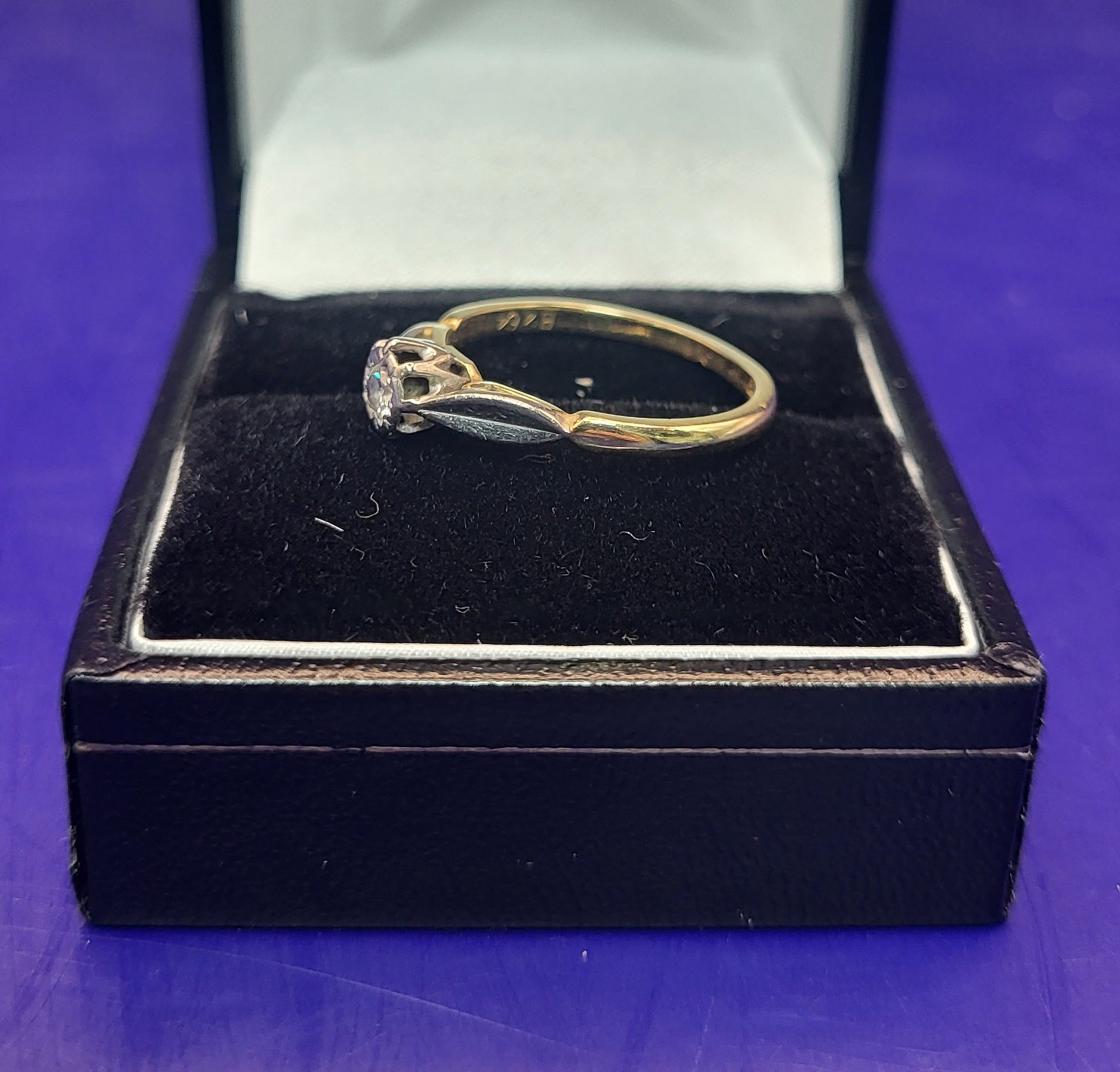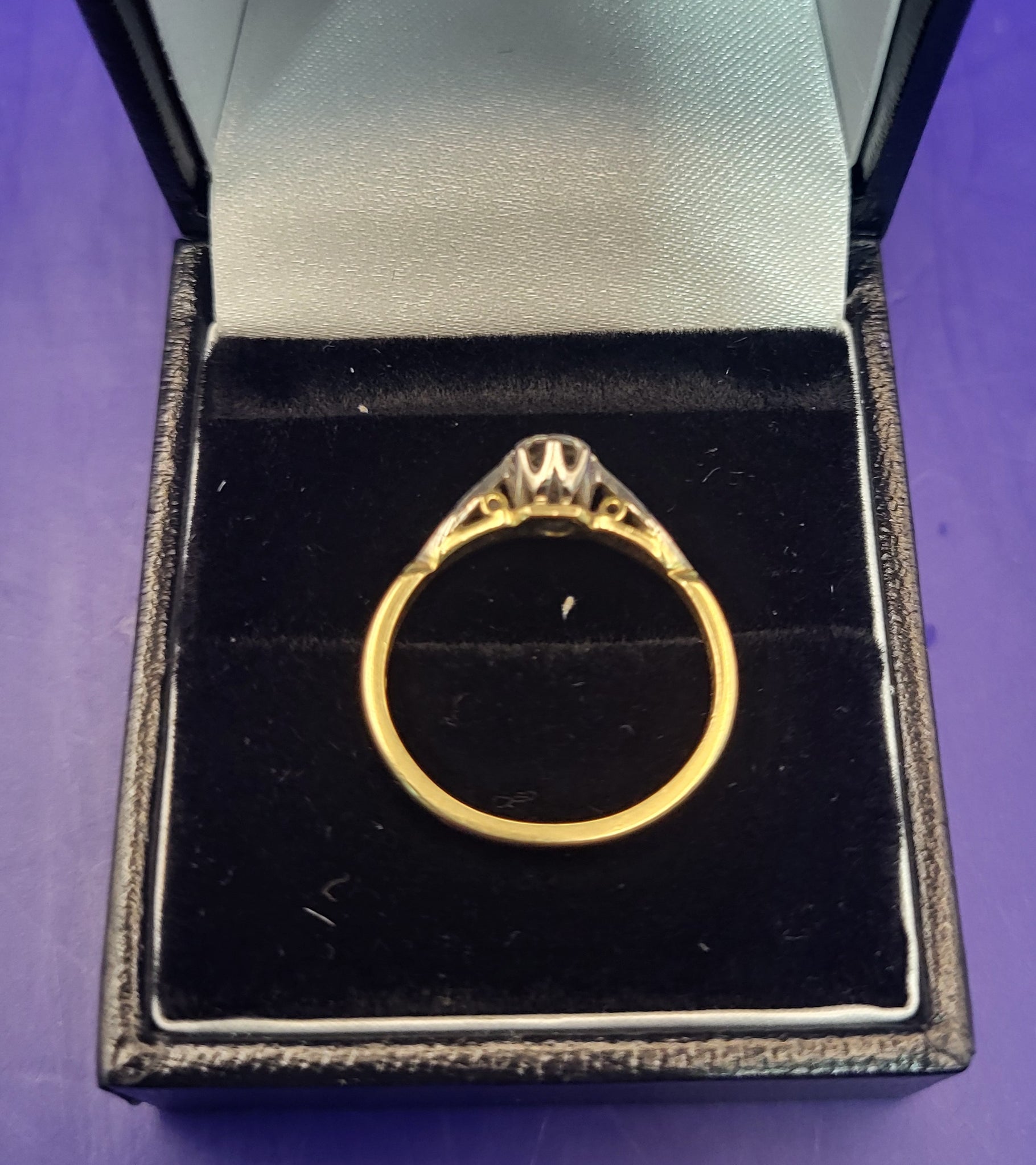 18CT -Yellow Gold Ring With Platinum Mount and Clear Stones - 2.64g - Size N