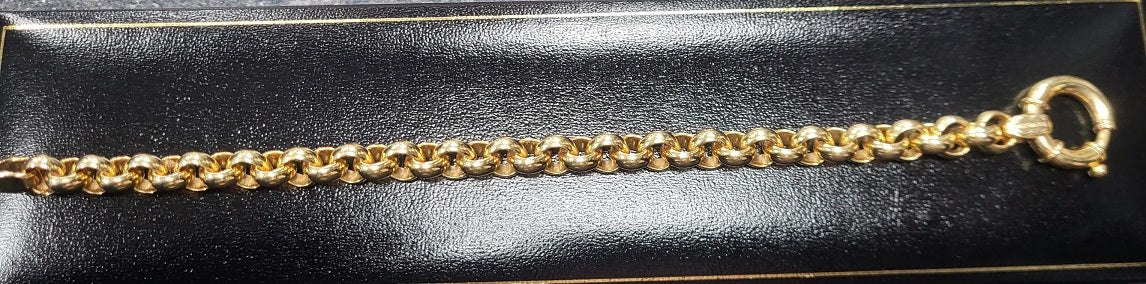 9ct Yellow Gold Belcher Bracelet - 11.3G - 8". Hallmarked