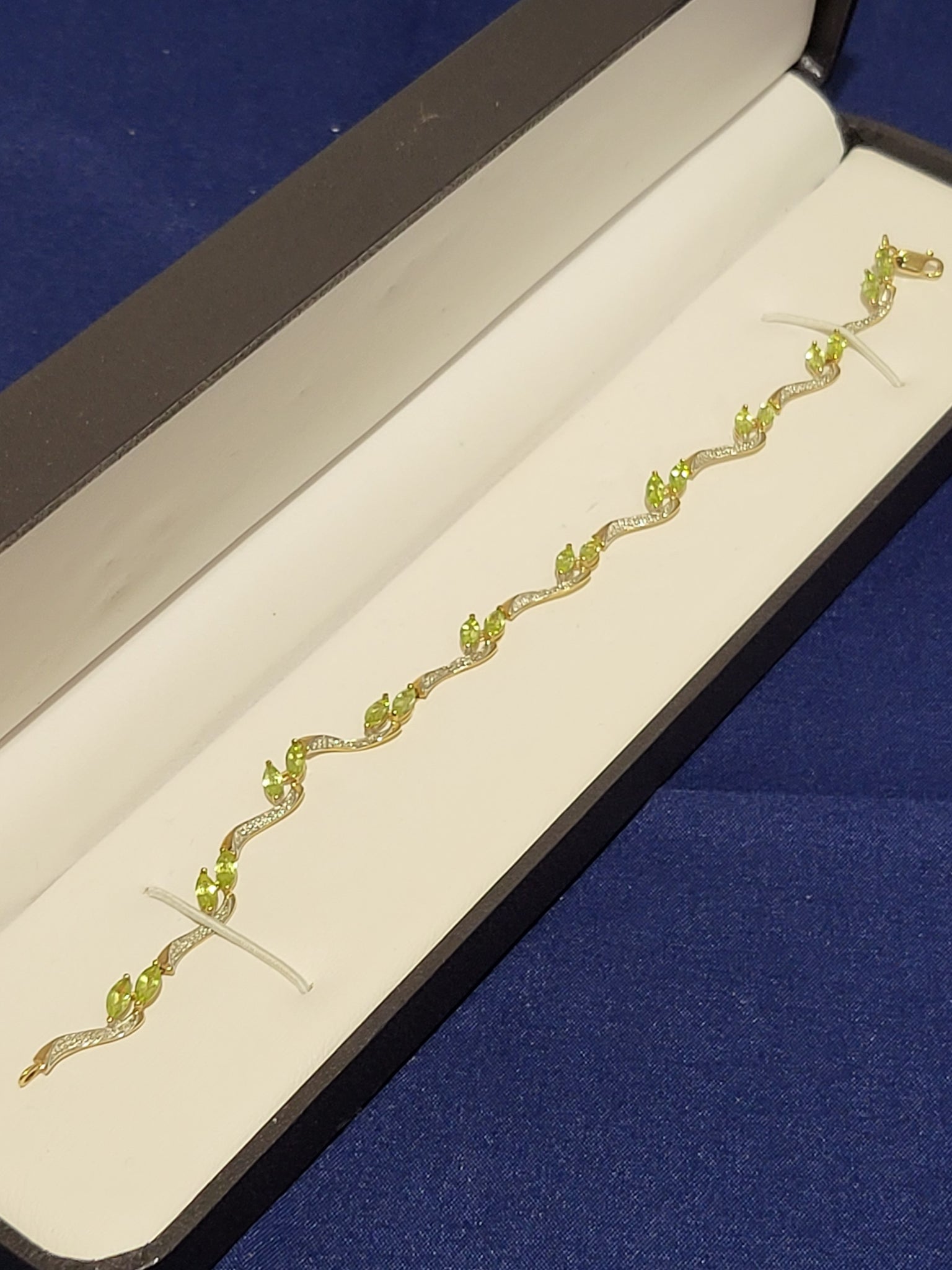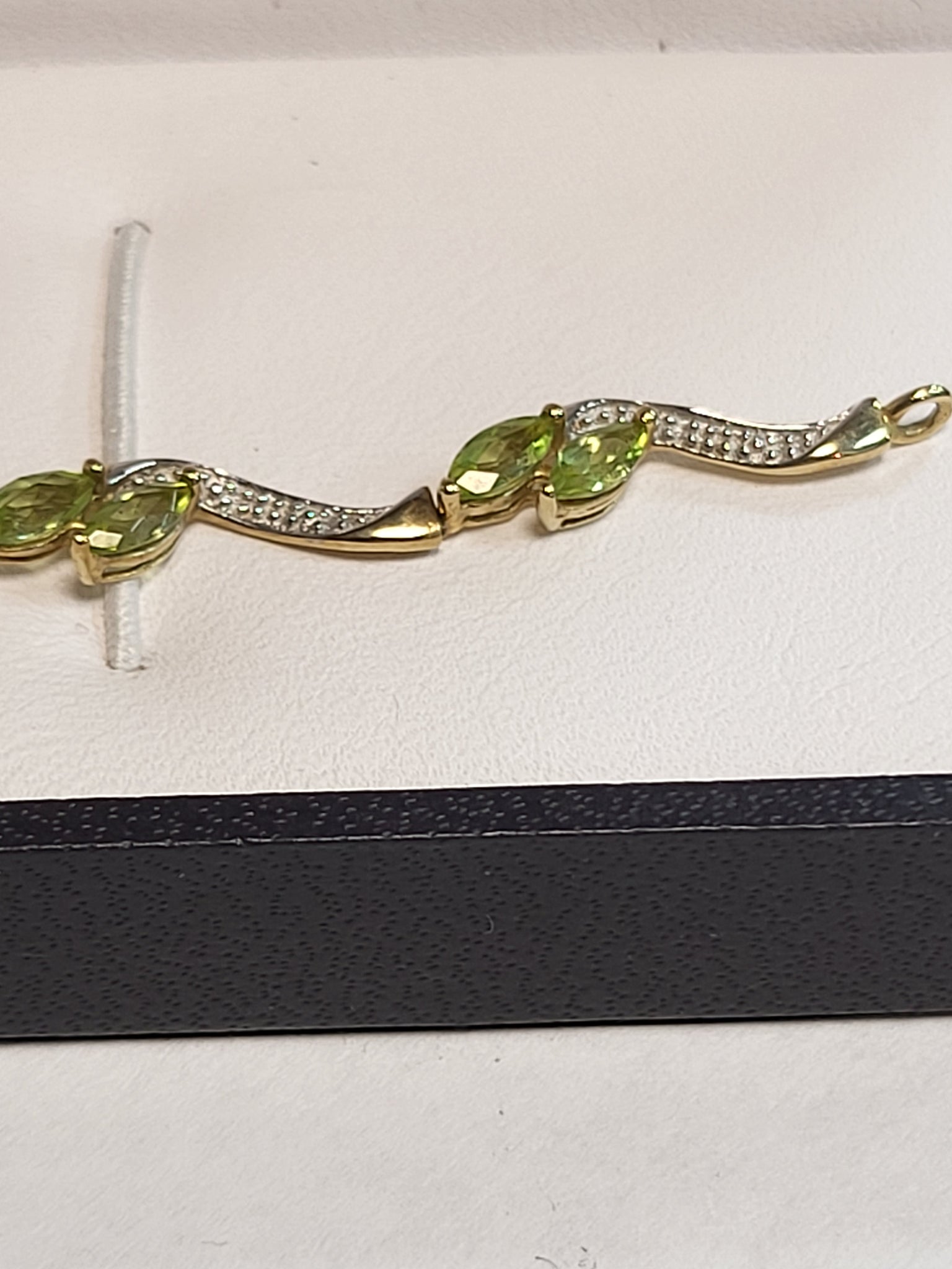 9ct Yellow Gold Bracelet with Green Stones - 7" - 4.1g total