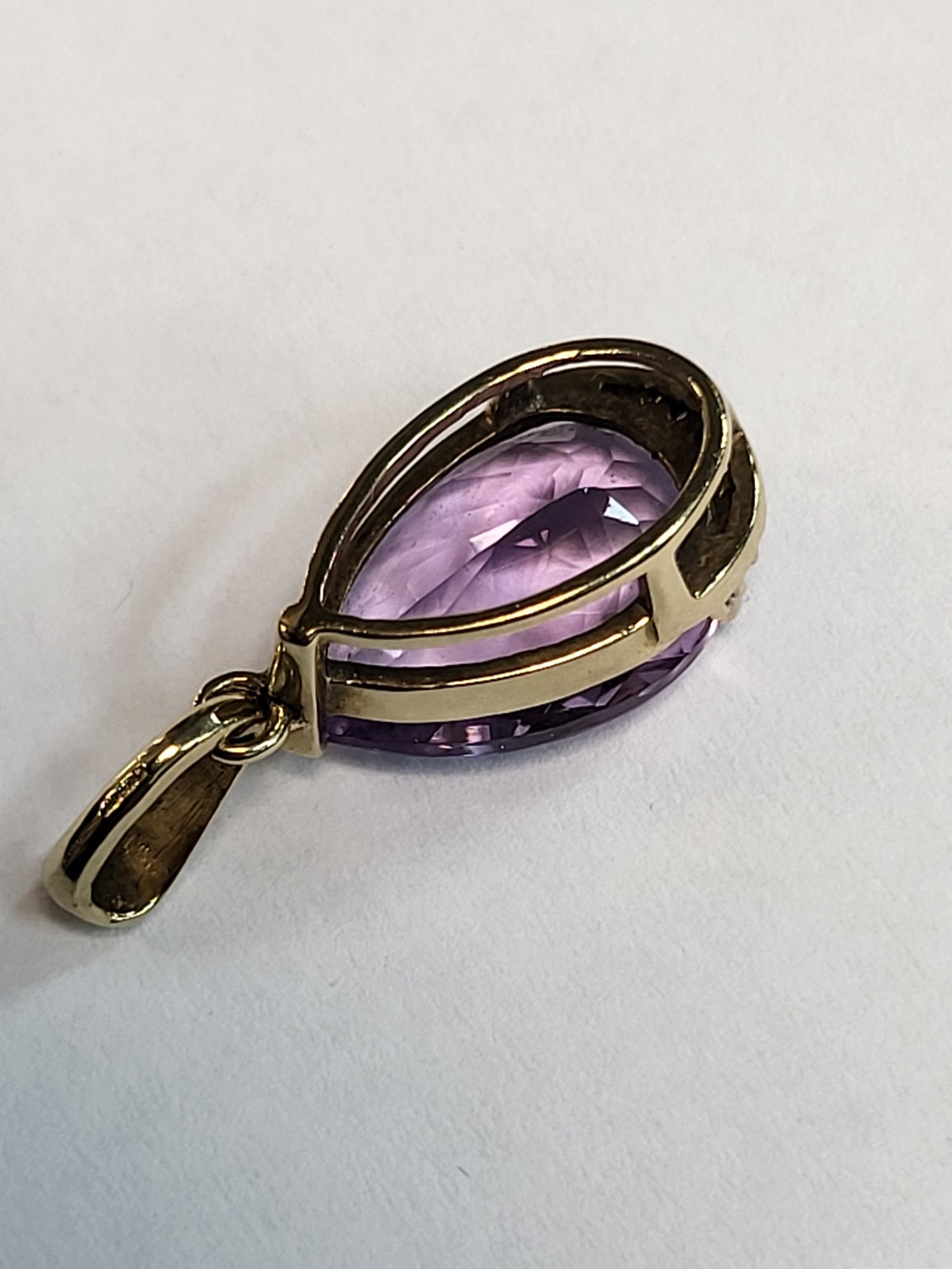 9ct Yellow Gold Pendant with Purple Stone - 2.47g total
