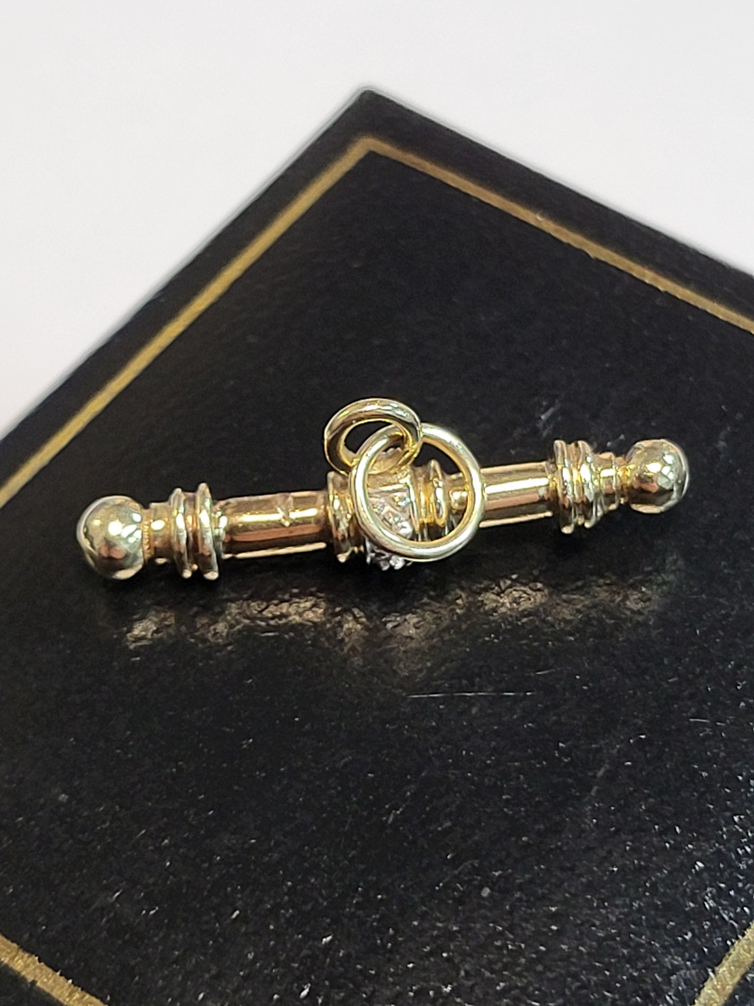 9ct Yellow Gold T-Bar Pendant with 2 Clear Stones - 2.35g - approx. 1" long