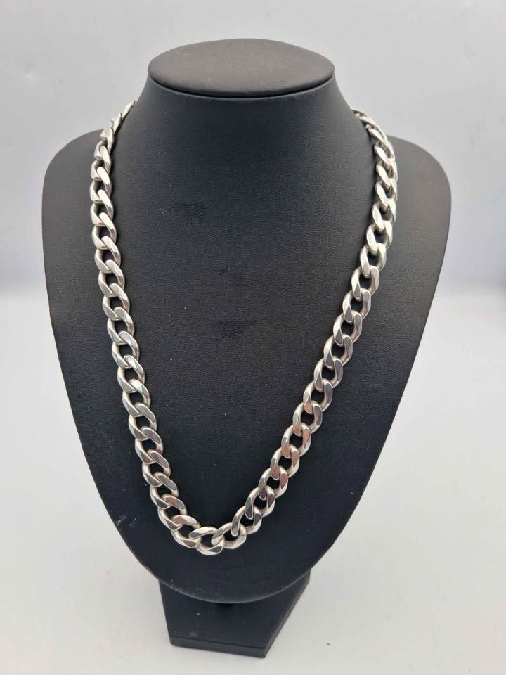 925 Sterling Silver 10mm Wide Thick Curb Chain Necklace - 92.99 Grams - 20" Long