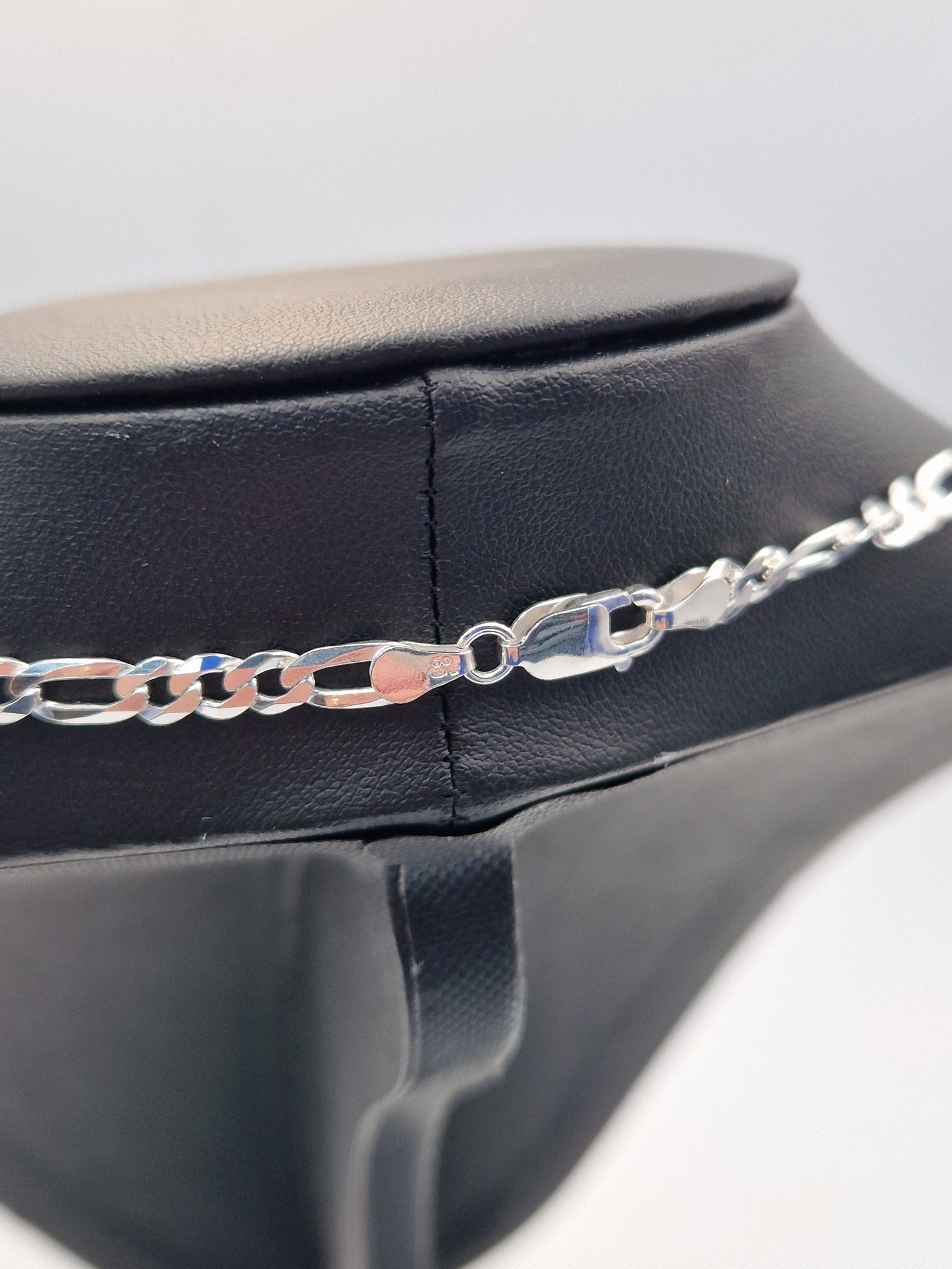 925 Sterling Silver 3 In 1 Figaro Bracelet - 9" Long - 6mm Wide - 8.70 Grams **BRAND NEW**