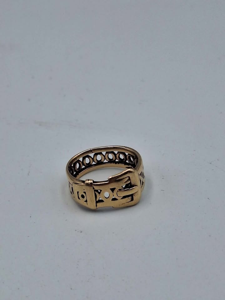9ct Yellow Gold Mens Buckle Ring - Size R - 5.93 Grams