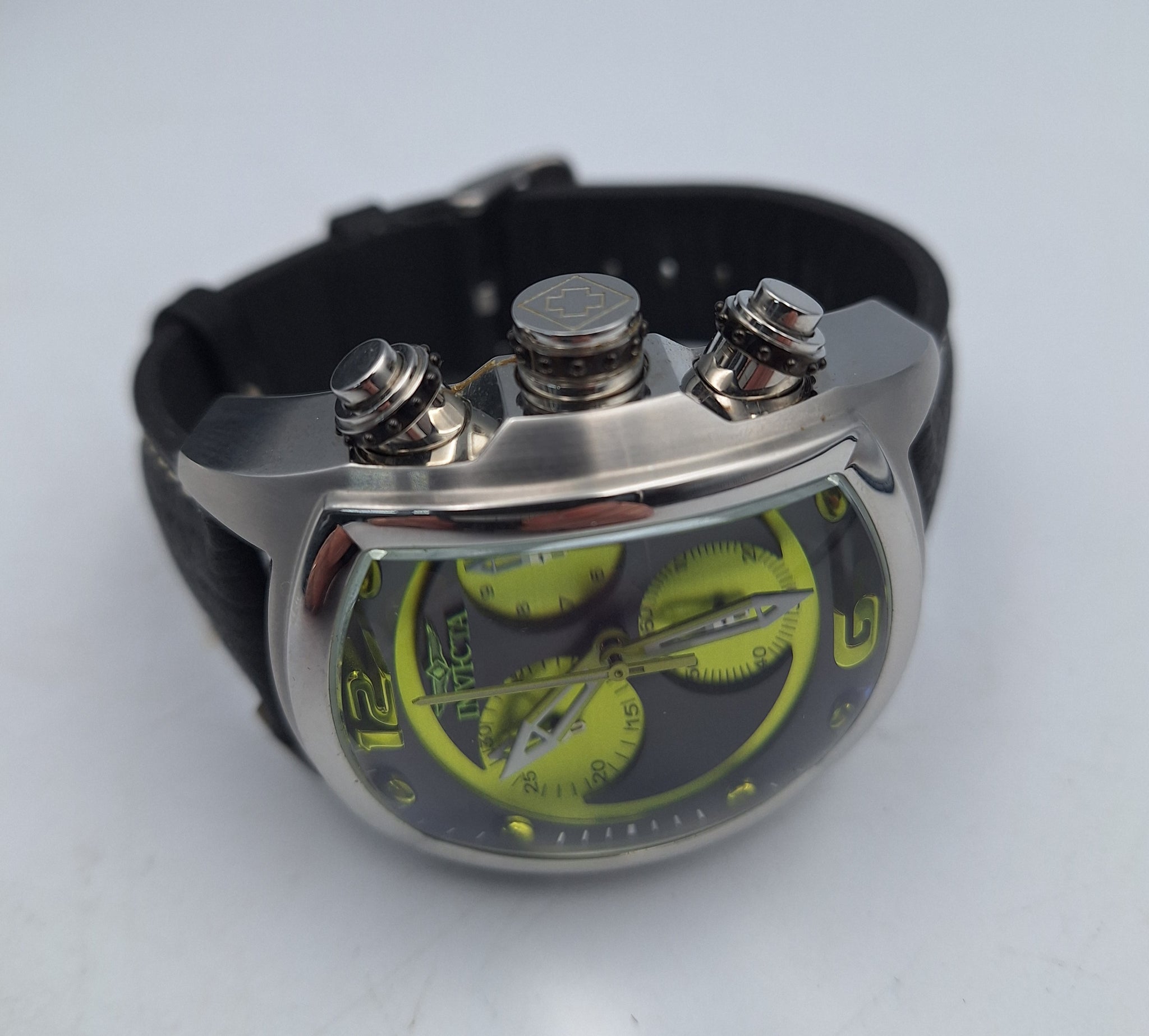 Invicta lupah Swiss quartz Yellow Chronograph Leather strap Boxed