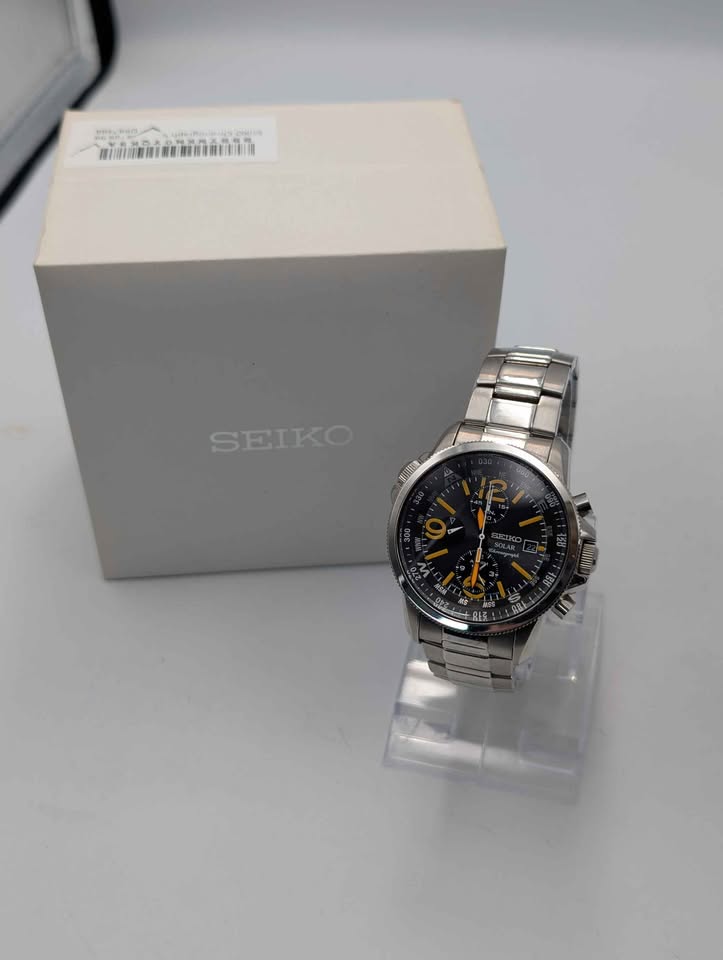 SEIKO Chronograph V172-0AG0 Solar Mens Chronograph Watch - Boxed With Steel Bracelet