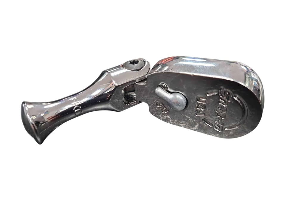 The Snap-on 3/8" drive stubby compact flex-head ratchet features an 80-tooth gear with dual-pawls for a 25% smaller ratcheting arc, a sealed head for protection, and a hard grip handle. The flex-head design allows for multiple positions and exceptional access in tight spaces, making it a durable and versatile tool for mechanics. Key specifications Drive size: 3/8 inch Ratchet technology: Dual 80® with an 80-tooth gear and dual-pawls Ratchet arc: Up to 25% less ratcheting arc compared to older models Head: Flex-head design with nine positive locking positions Sealed head to keep contaminants out and lubricants in Handle: Stubby and compact design for tight access Hard grip for comfort and chemical resistance Durability: Seven teeth in contact with the gear for strength and durability Rugged reverse lever Finish: Chrome finish for easy cleanup