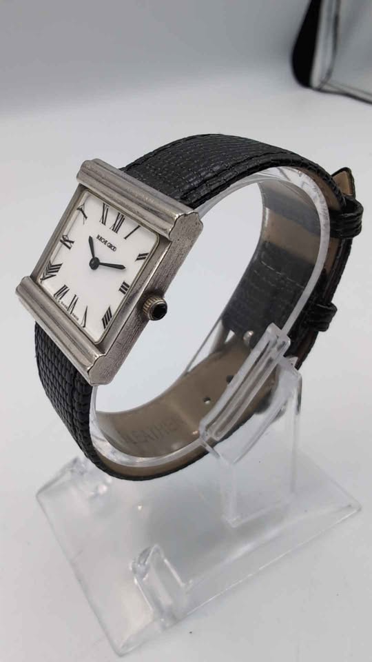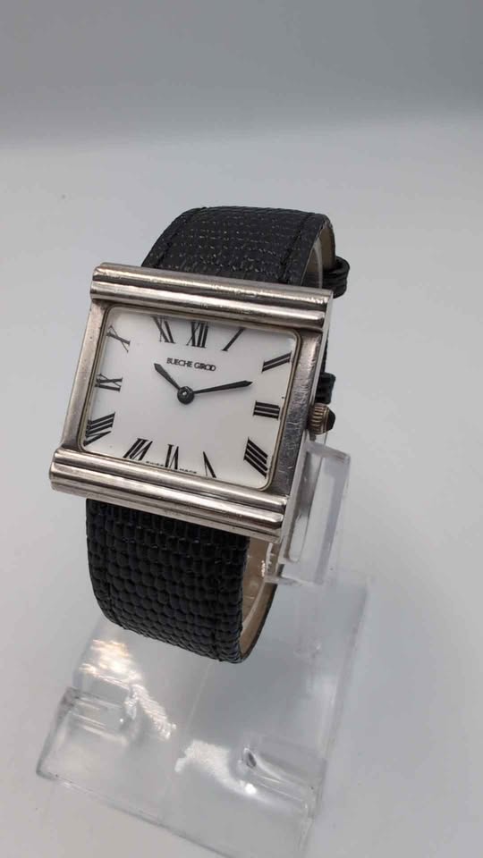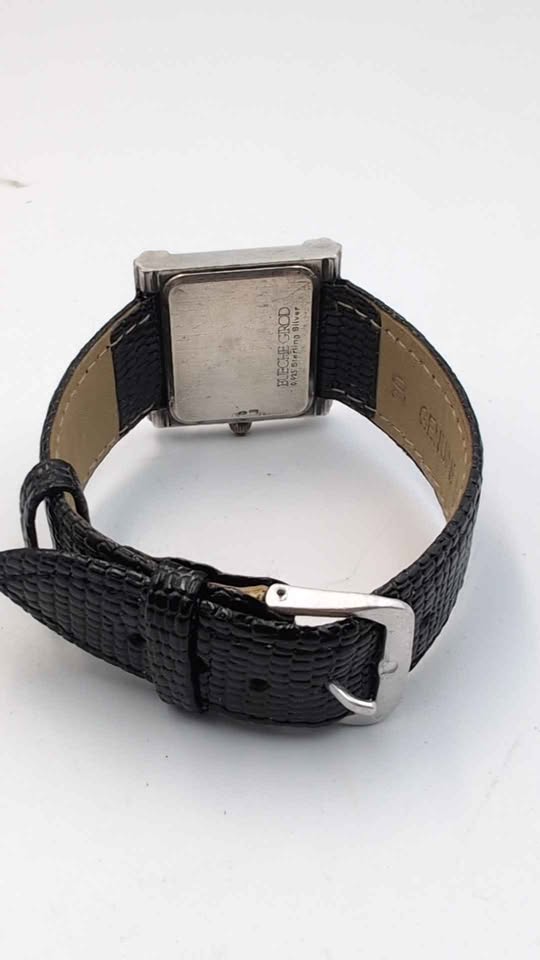 Vintage Bueche Girod “TV Case" Quartz Watch 925 Sterling Silver Case - Unboxed With Leather Strap