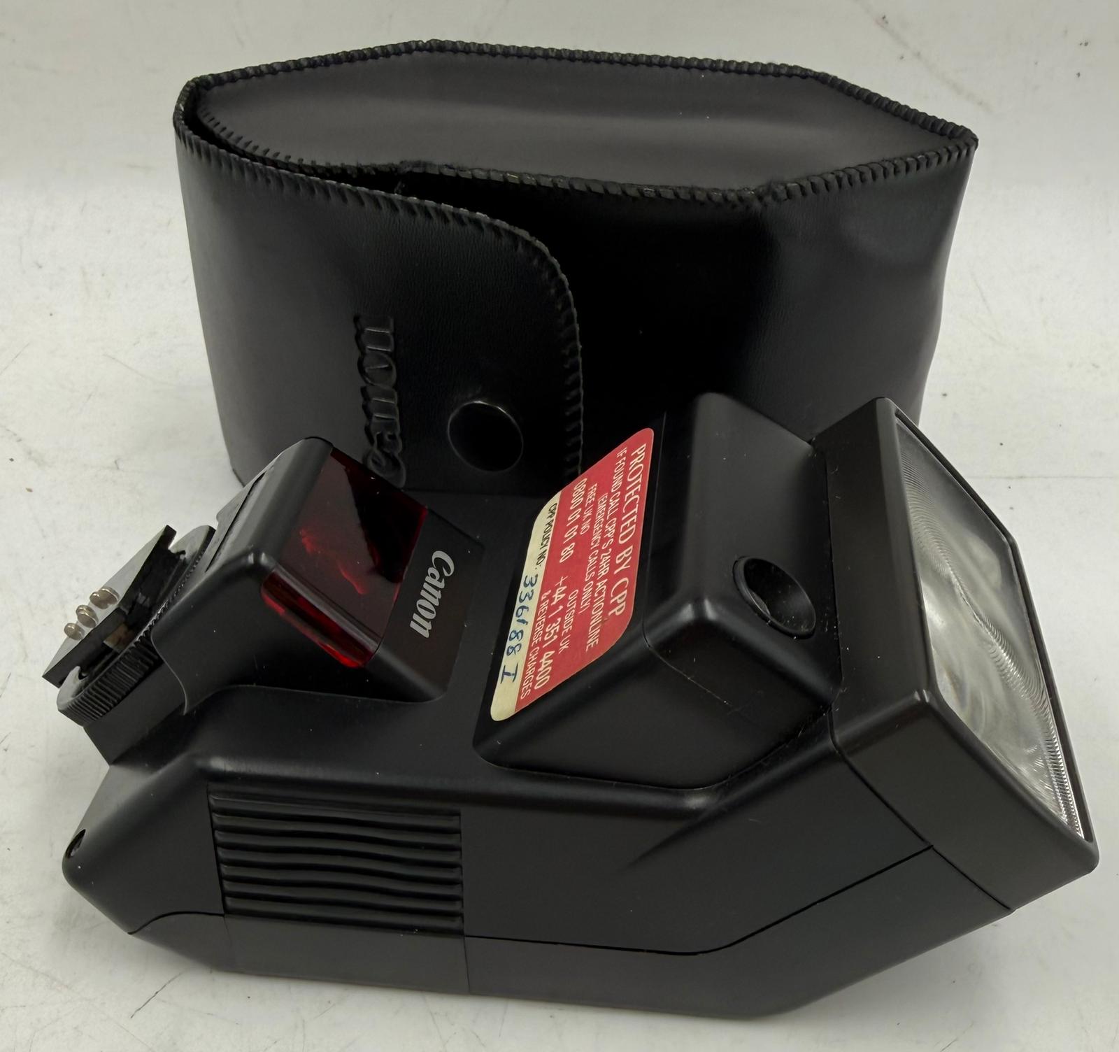 Canon Speedlite 300EZ Flash, Is in good condition. Comes with case. The Canon Speedlite 300EZ Shoe Mounted Flash is a reliable and fully functional accessory designed specifically for Canon cameras. With its shoe mount feature, this flash unit can easily be attached to the camera for added lighting options while shooting. As a Canon product, users can expect high quality and compatibility with Canon cameras, making it a valuable addition to any photography setup. The Speedlite 300EZ model offers a range of flash power settings to suit different lighting needs, ensuring crisp and professional-looking photos.
