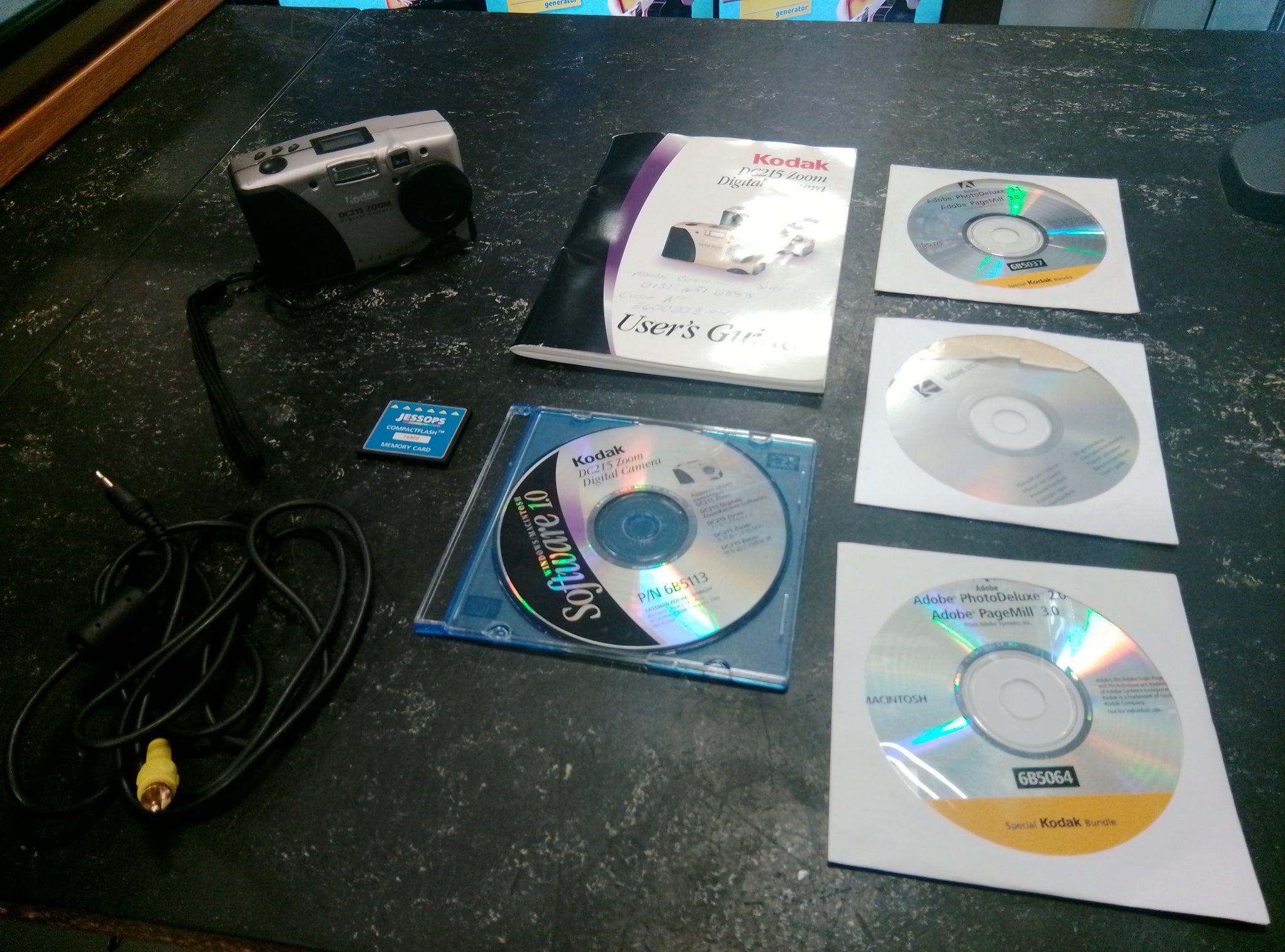 Kodak DC215 Zoom digital camera Wrist strap and lens cap 1.8" LCD display 2x optical zoom lens 29mm - 58mm focus length Includes 4MB COMPACTFLASH card Serial cable for PC Boxed with manual and software