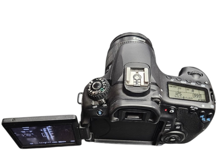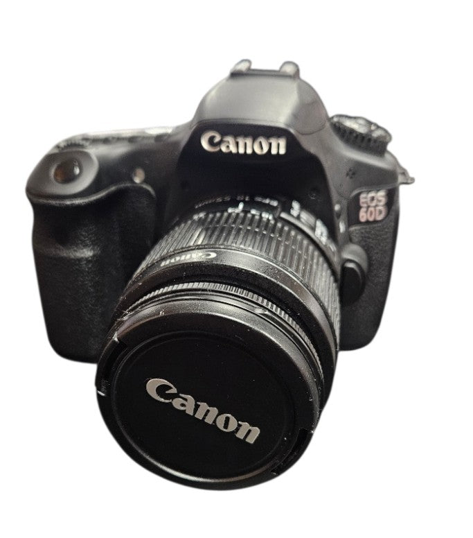 The Canon EOS 60D with an EF-S 18-55mm lens is a capable, older DSLR kit, great for learning photography with its versatile zoom, flip-out screen, 18MP sensor, and Full HD video, though it's a budget-friendly used option now, ideal for understanding core principles before upgrading to mirrorless for advanced features. The 18-55mm lens offers a good standard range (wide to short telephoto) with image stabilization, while the 60D body provides manual controls, Live View, and HDMI output for HD playback.
