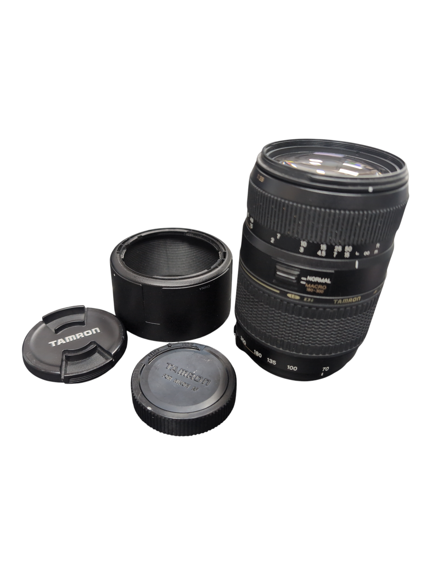 The Tamron AF 70-300mm f/5.6 Di LD Macro 1:2 for Canon is a telephoto zoom lens with a focal range of 70-300mm, a maximum aperture of f/4-5.6, and a 1:2 macro capability. Its specifications include a 62mm filter size, a weight of approximately 435g, a minimum focusing distance of 0.95m (macro) and 1.5m (normal), and an optical construction of 13 elements in 9 groups. It is designed for Canon EF mount cameras. Specification Detail Lens Type Telephoto Zoom, Macro, Standard Focal Length 70-300mm Max Aperture f/4-5.6 Min Aperture f/32-45 Lens Mount Canon EF Filter Size 62mm Weight Approx. 435g Dimensions 76.6 x 116.5mm Optical Construction 13 elements in 9 groups Minimum Focusing Distance 0.95m (Macro), 1.5m (Normal) Macro Ratio 1:2 Focus Autofocus (AF)