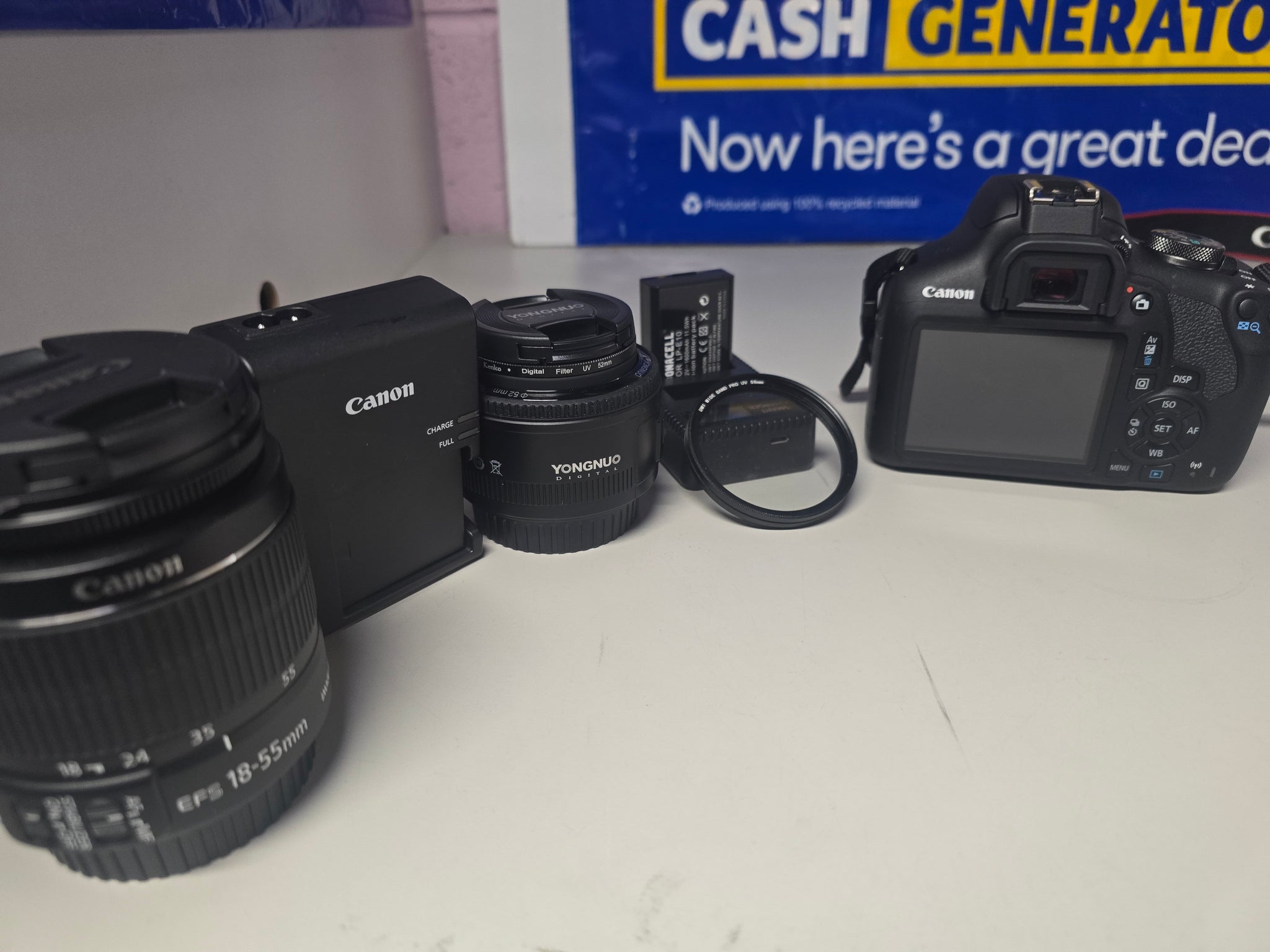 Canon Eos 2000D 18-55mm + 50mm Lens Unboxed with extra batteries and 1 lens filter.
