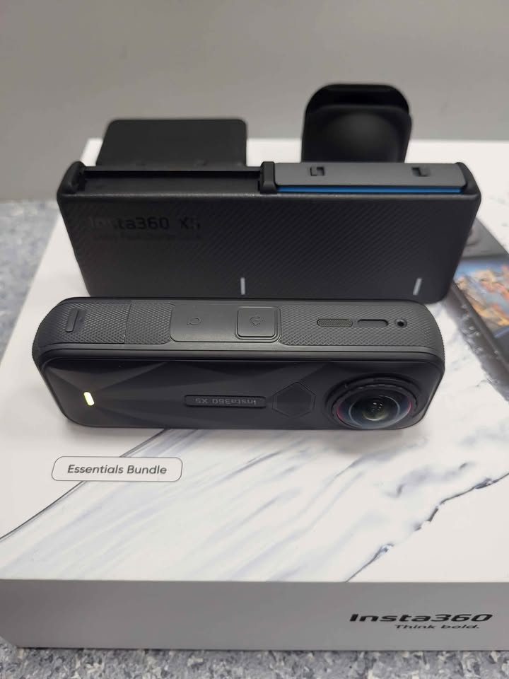 Insta360 X5 - Essentials Bundle - 8K 360 action Camera - In excellent like new condition - the boxed set includes The Inst360 camera with 2 batteries - Battery holder - selfie stick - additional lens covers and carry case. Includes postage within UK mainland