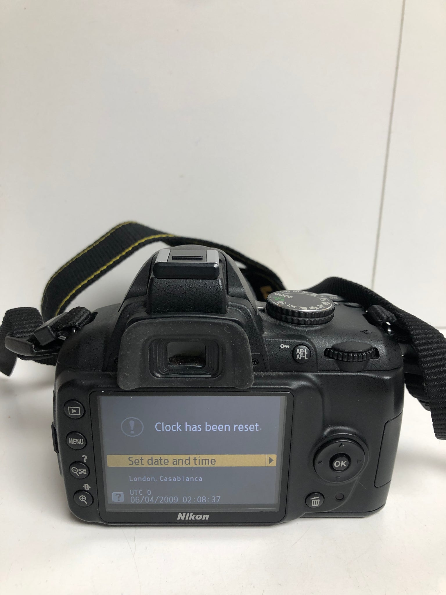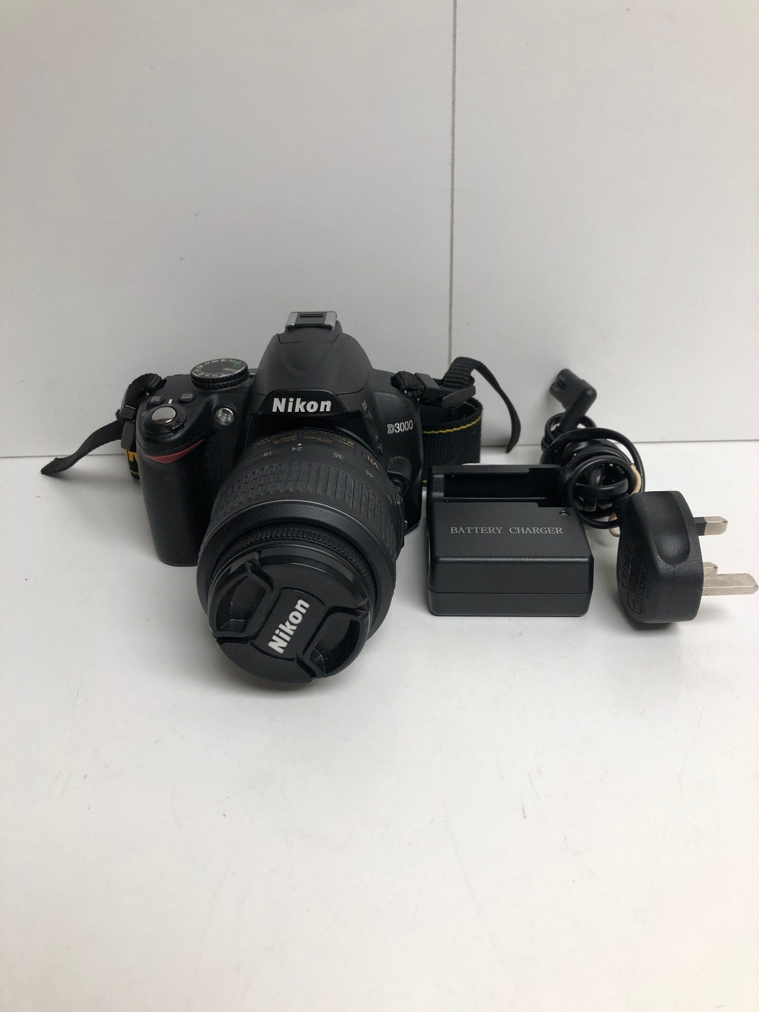 The D3000 is a high-performance DX-format SLR that delivers superb images and boasts a range of functions, which make photography simple and fun. Nikon's intelligent Guide Mode offers incredibly user-friendly in-camera assistance, enabling even beginners to capture wonderful images. Perfect for shots that you are not sure how to take, and guide mode will ask you about the image you want to capture and automatically optimize the camera settings for the best possible results. When you want to learn more, you can use Guide Mode to find out how to adjust the settings yourself. The 10.2-megapixel image sensor and fast autofocus performance ensure precise, detailed images. The large, 3-inch LCD screen is highly convenient for composing and reviewing images, and makes it easy to use the in-camera retouch menu that enables you to modify images without a computer. The D3000 - the camera that shows you how to capture stunning shots with ease. unboxed, in good condition, with battery,charger and power cable