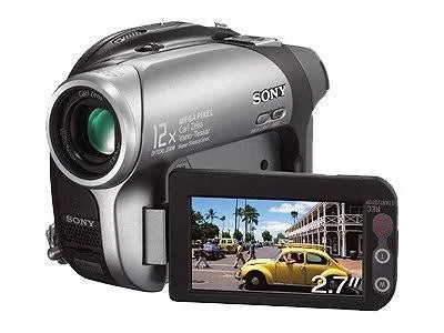 The Sony Handyman DCR-DVD202E Camcorder is a vintage digital video camera that offers standard definition recording. With a sleek silver design and a 2.7-inch LCD screen, this compact camcorder features a 12x optical zoom and 480x digital zoom capabilities. It also includes image stabilization, night vision, and a built-in microphone for high-quality footage. This model comes with connectivity options such as AV, DC In, and a remote jack, as well as featuring a wireless remote control for easy operation. Made in Japan, this camcorder is a reliable choice for capturing memories in a convenient DVD format.