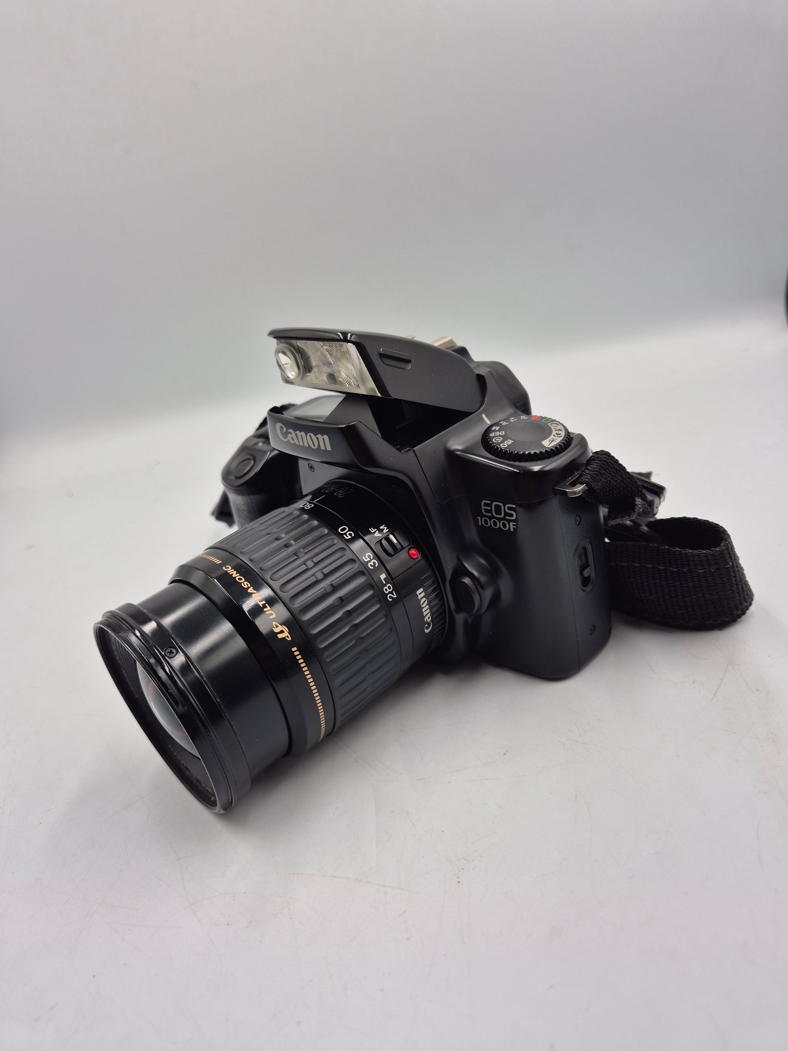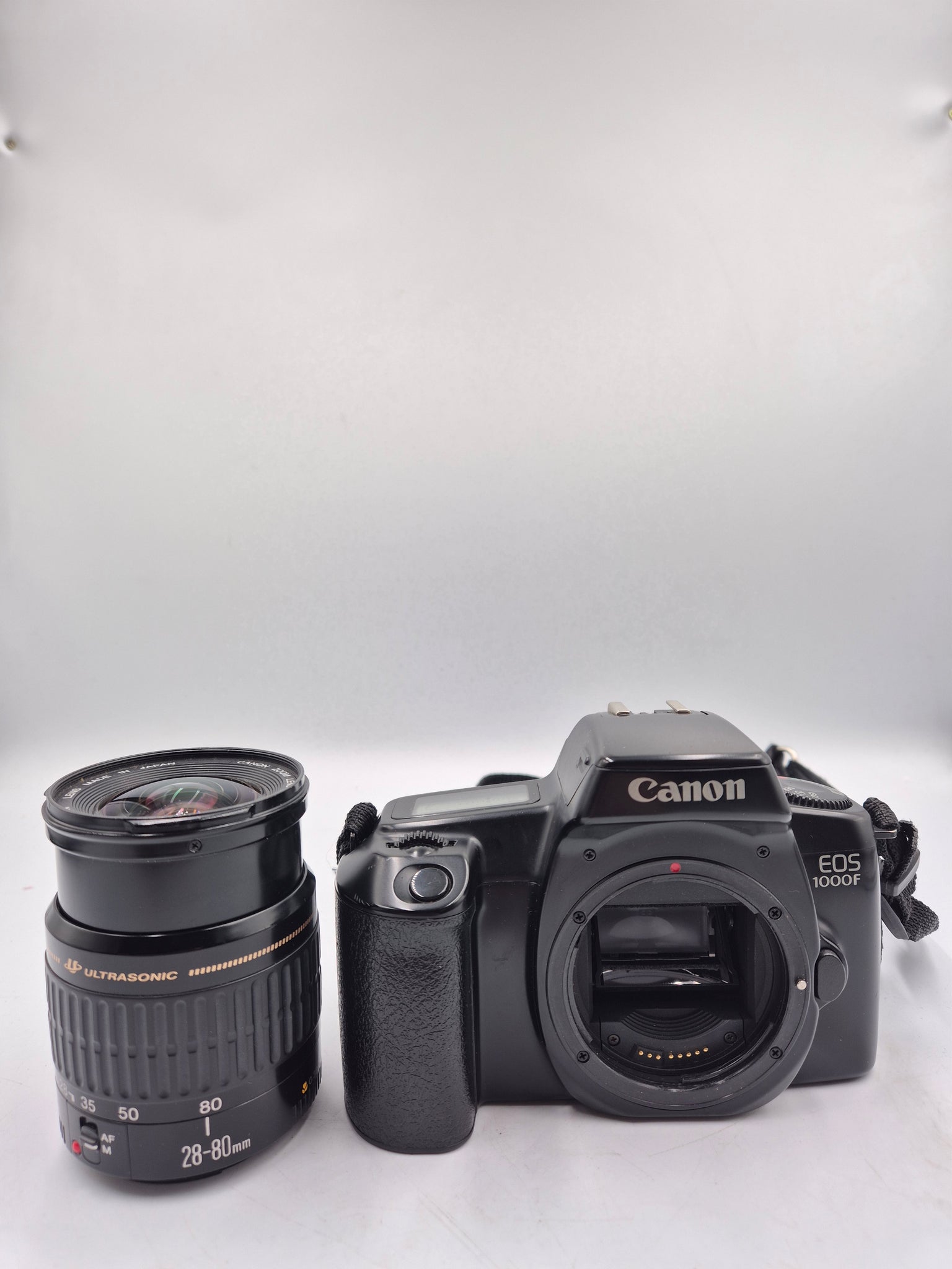 The Canon EOS 1000F is a 35mm film SLR camera from the early 1990s that features autofocus and autoexposure, making it a popular choice for both beginners and professionals. Also known as the Rebel S(II) in the US, it was built with an EF lens mount and included automatic and manual modes, a built-in flash, and a self-timer. Key features Autofocus and autoexposure: Offers both automatic and manual control over exposure. Modes include Program, Aperture-priority (Av), Shutter-priority (Tv), and Manual. EF lens mount: Compatible with a wide range of Canon EF lenses. Built-in flash: Features an automatic, pop-up flash with TTL flash metering for low-light shooting. Shutter: Includes a vertical-travel, electronic focal-plane shutter with speeds from 30 seconds to second. Self-timer: Equipped with a 12-second self-timer. ISO range: Automatically sets film speed based on the DX code on the film cartridge, with a range of ISO 6 to 6400. Continuous shooting: Capable of shooting up to 1 frame per second in its continuous mode. Compact and lightweight: Designed to be compact and easy to carry.