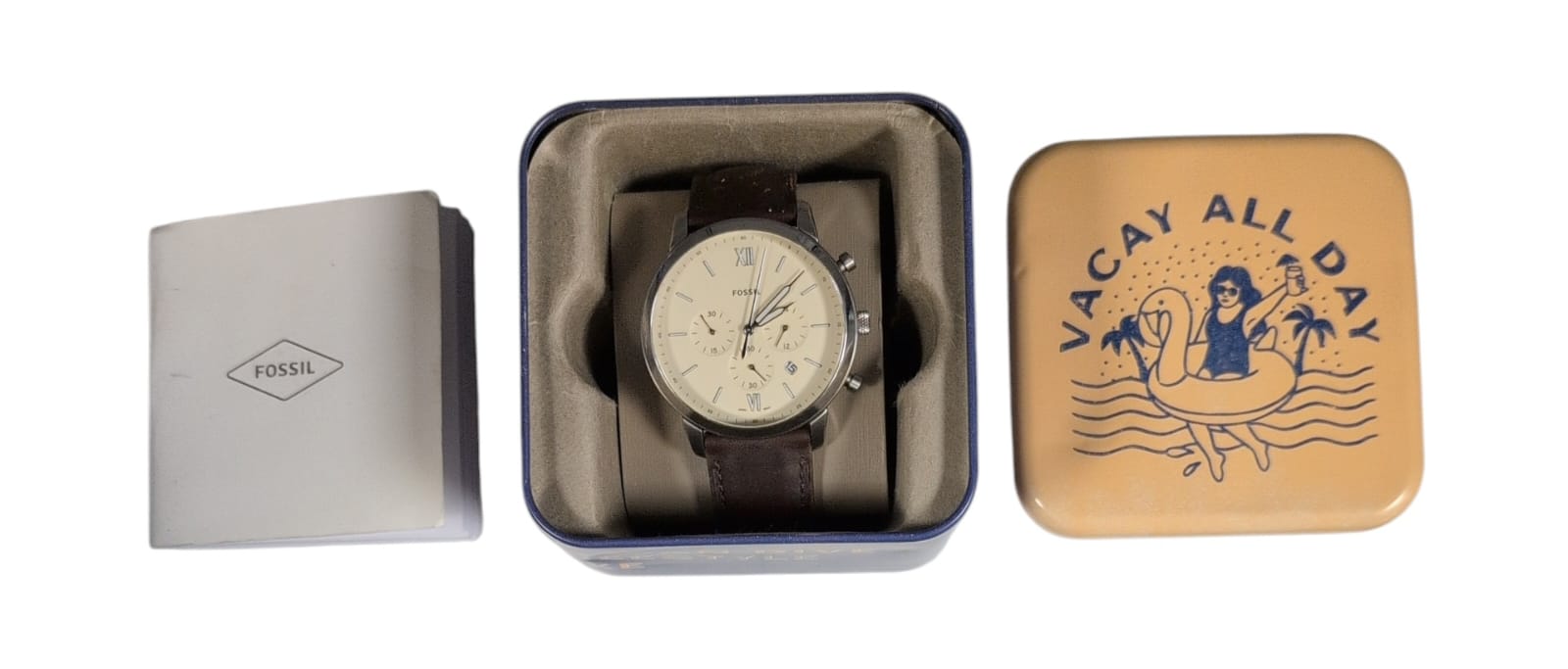 Fossil Watch ST4209 Brown Leather Strap Is in good condition, has engraving on the back of the watch "Happy 60th Birthday Paul".