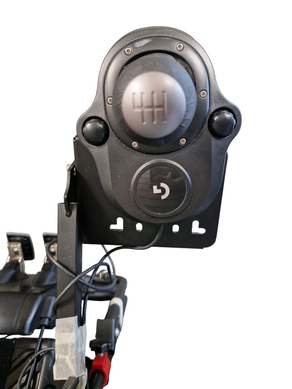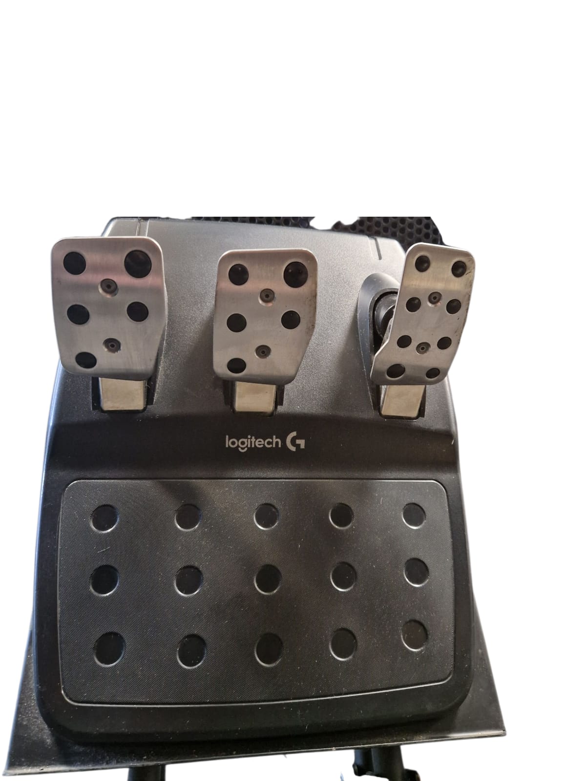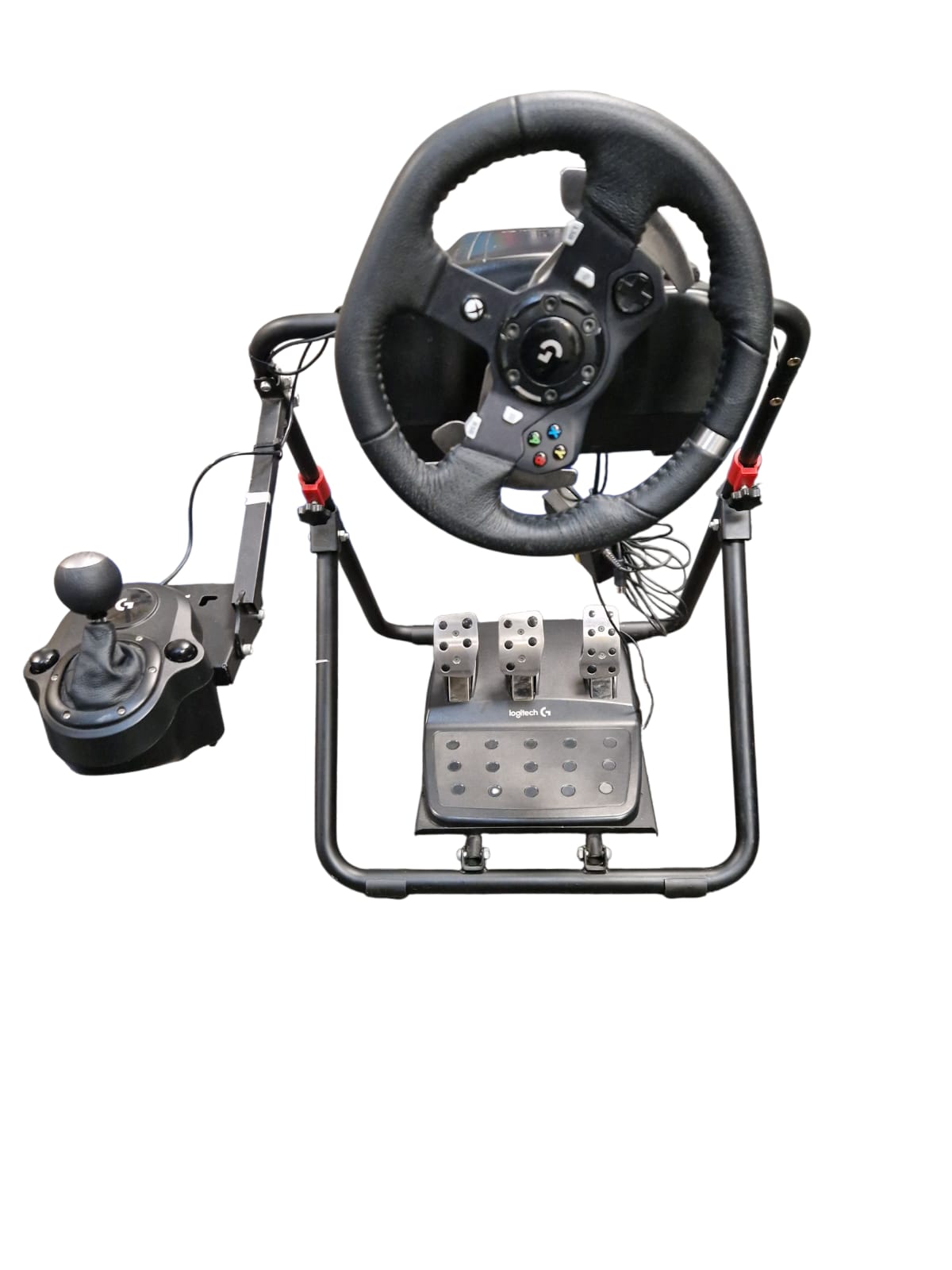 Find Logitech G920 Racing Wheel With Pedals & Shifter – Xbox/pc – Used. This set is attached to a metal sim racing set.