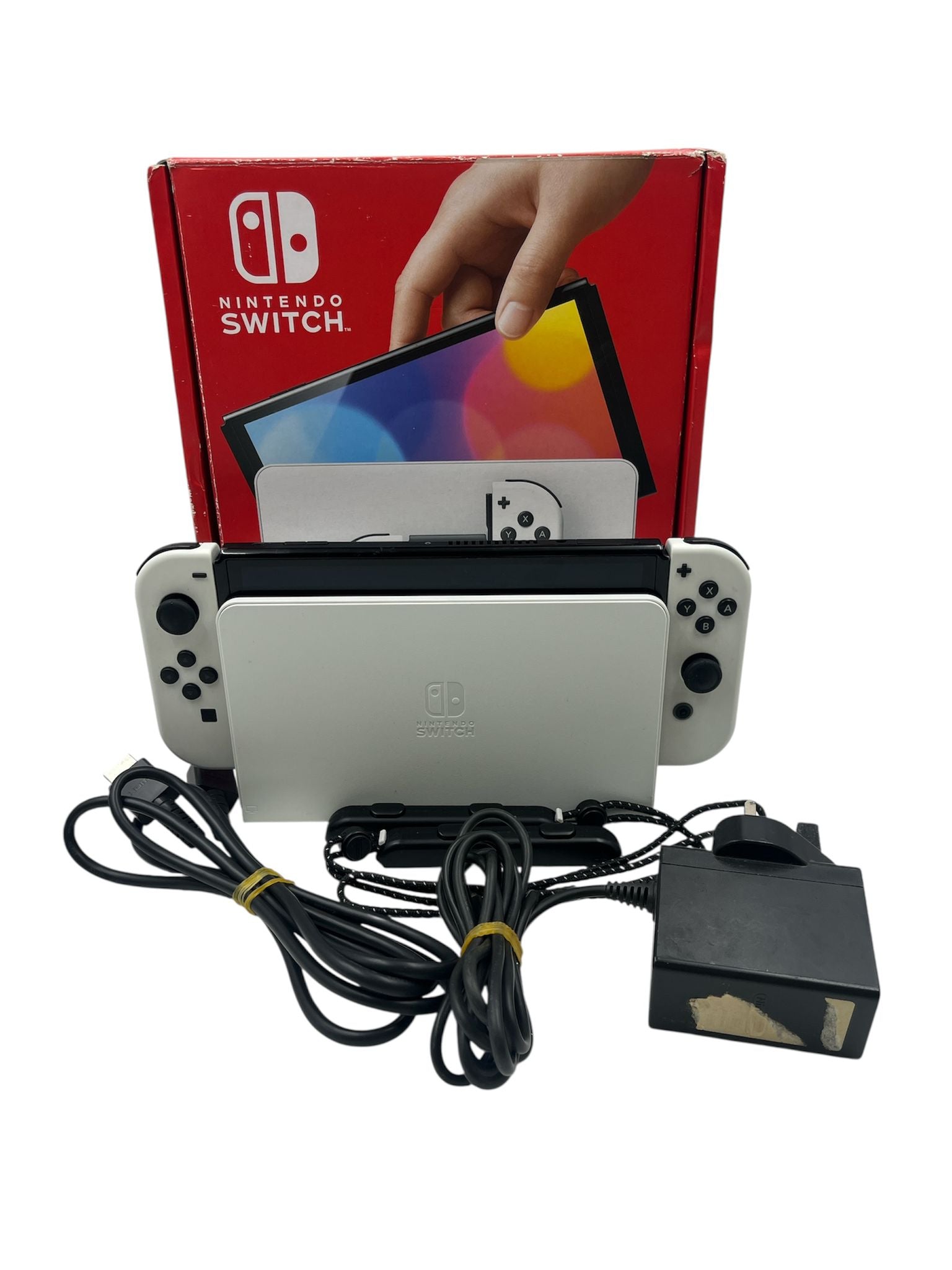 Nintendo switch oled the console works well but does have a few light scratches on the screen and back boxed with all power cables