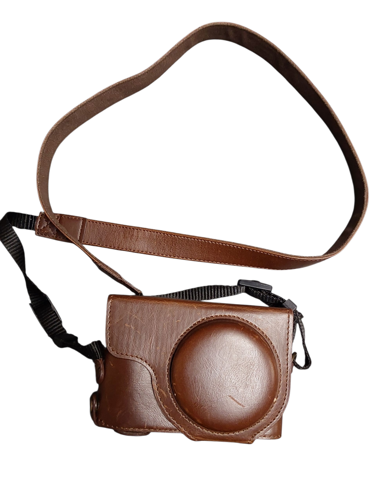 Pre-owned few scratches on the camera . It doesn't effect the camera at all. Comes with leather case, charger, 1 battery and 8GB memory card