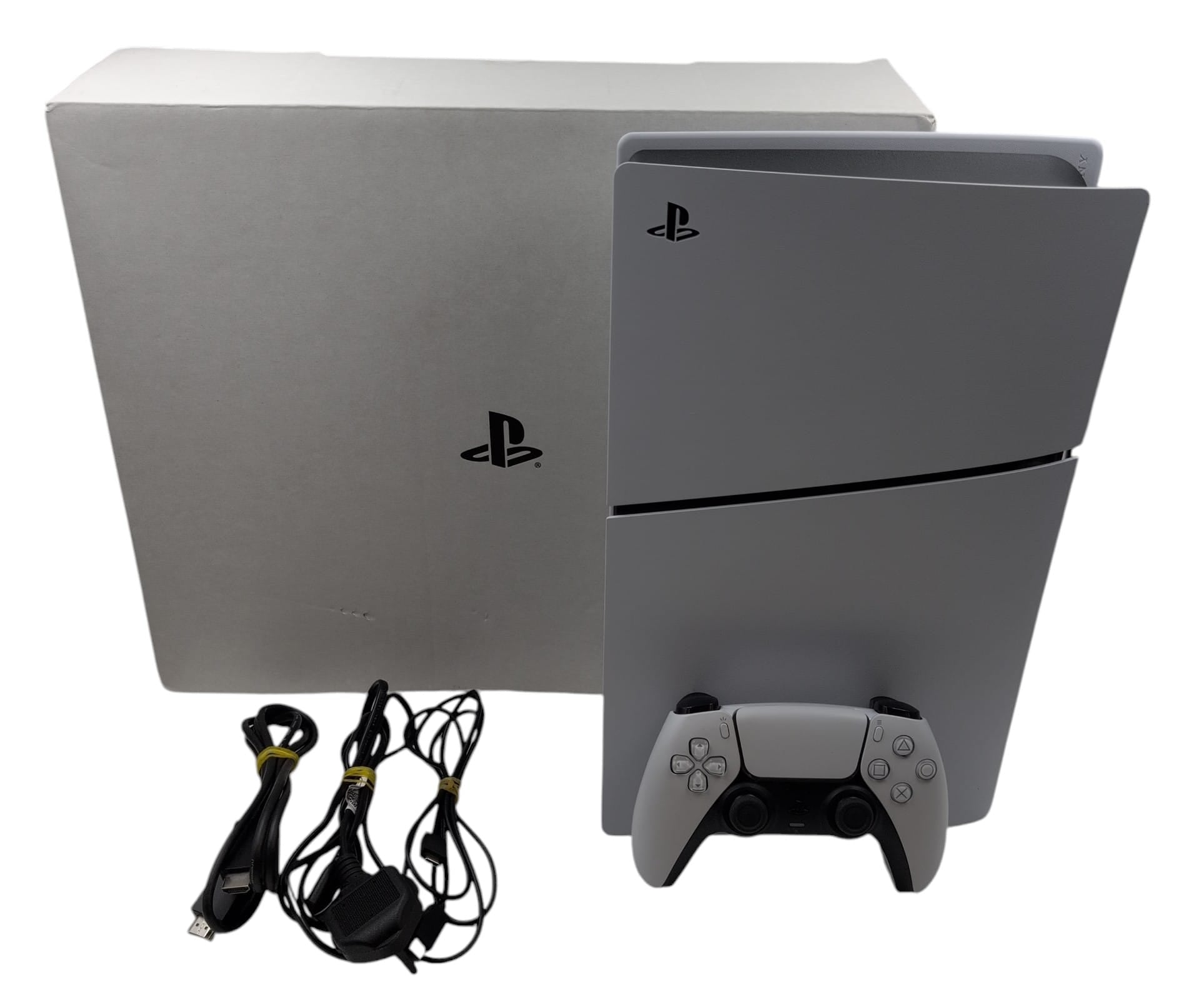 Sony PlayStation 5 1TB Slim Digital Edition Matte Finish (2023/2024 revision). Comes with original box, HDMI cable, USB-C cable, power lead and PS5 original controller white. Is in great condition.