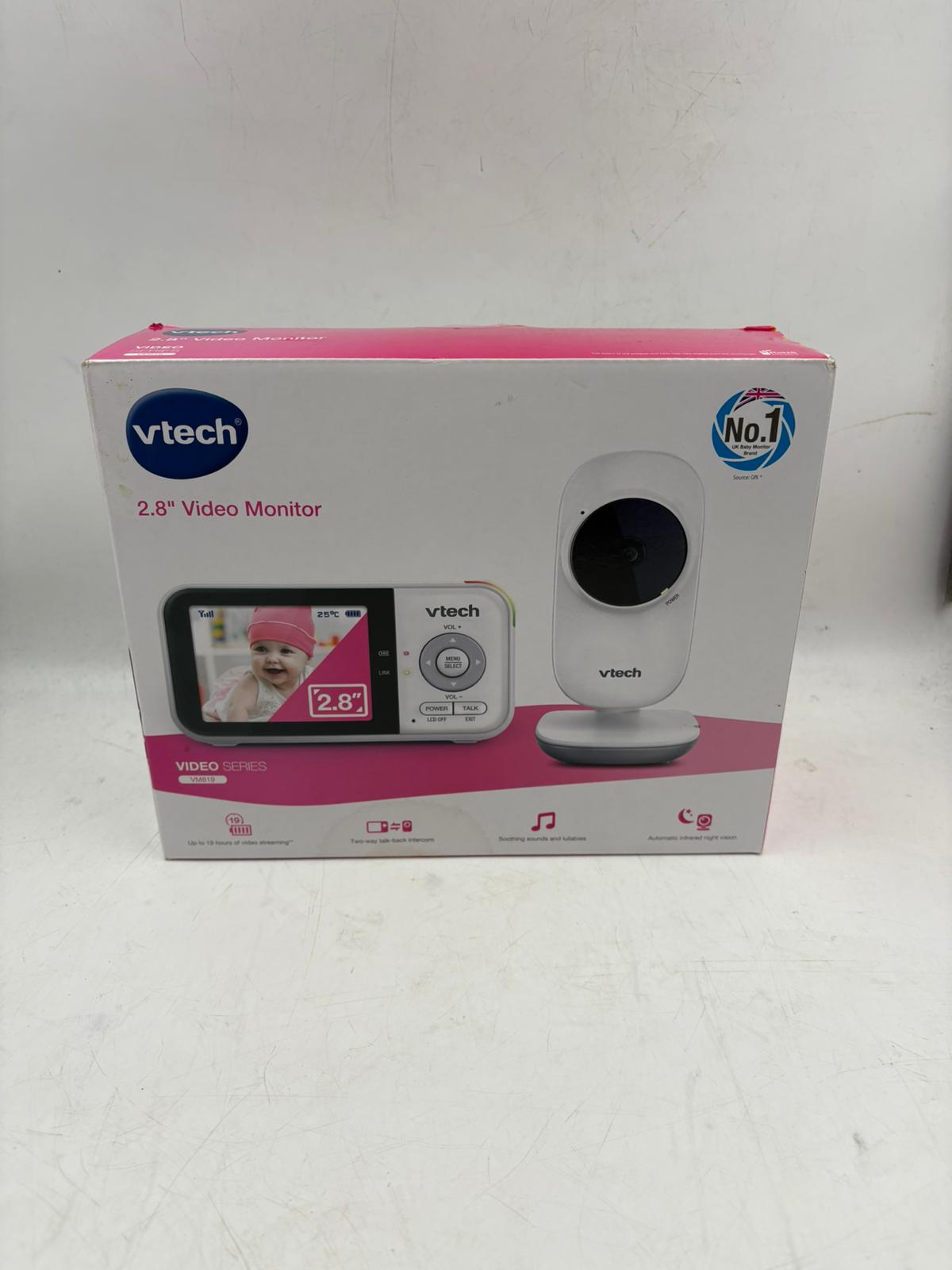 High-resolution, 2.8-inch colour LCD screen - clearly see every move right from the high resolution 2.8" parent unit. Get the best possible video monitor experience from Vtech baby monitors; when you check on your baby, you'll feel like you've never left the room. Soothe baby with melodies Choose from two calming melodies and two soft ambient sounds, including a trickling stream and white noise, to help your baby slip into a sweet sleep. Two-way, talk-back intercom Sometimes all your baby needs is to hear the sound of your voice. Comfort your infant from any room with the built-in intercom on the portable parent unit. Temperature sensor Keep your little one cosy. The temperature indicator on the parent unit lets you know when it's time to adjust the thermostat. Rechargeable battery with up to 19 hours of video streaming Easily monitor your baby throughout the night on one charge with the industry's best battery life. This video baby monitor offers up to 19 hours of video streaming or up to 29 hours of audio only streaming. Adjustable camera angle The camera is easy to adjust, so you can have the best view no matter where you place the baby unit.