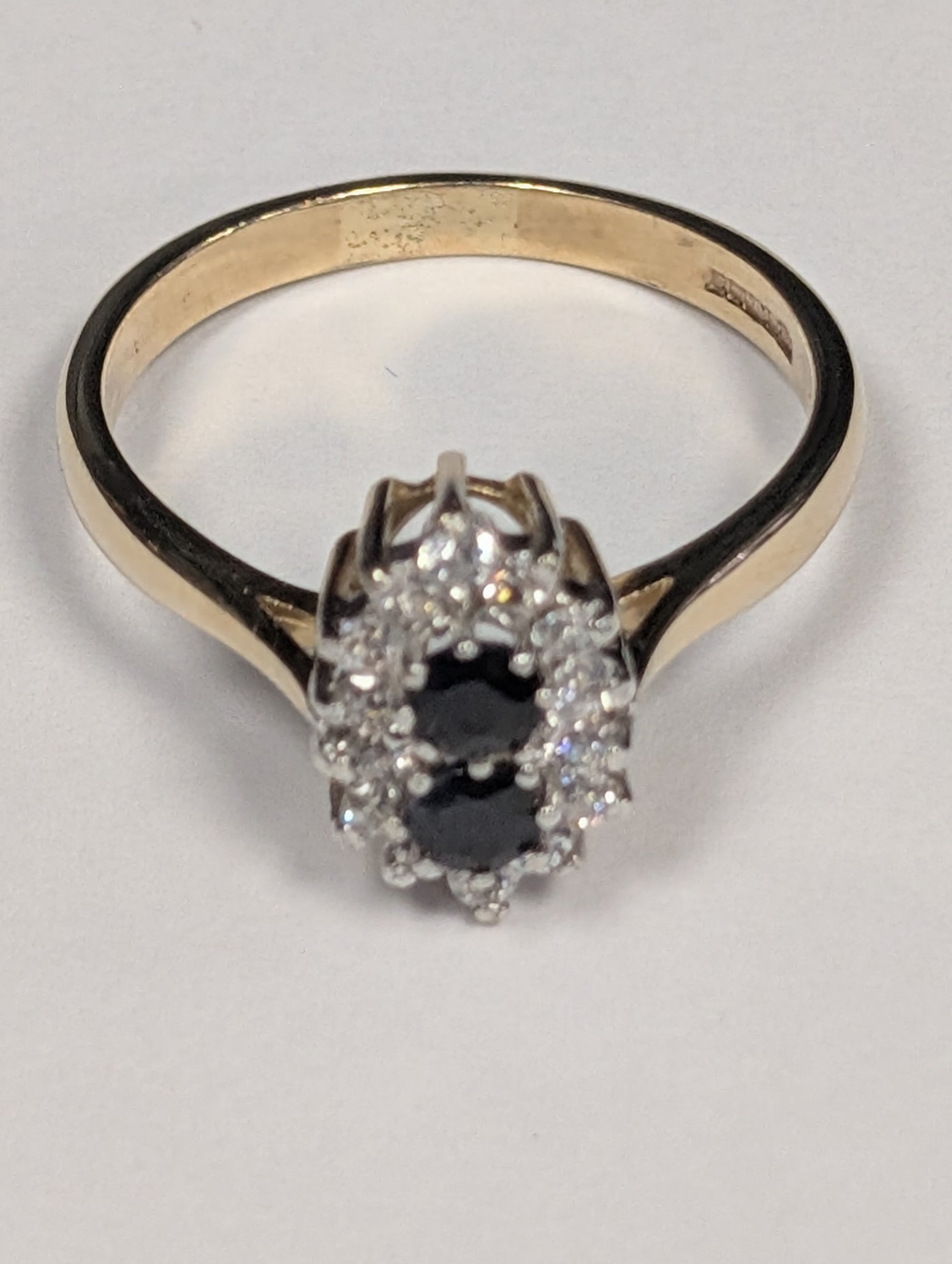 9ct Gold Ring With Black Stones - Size V