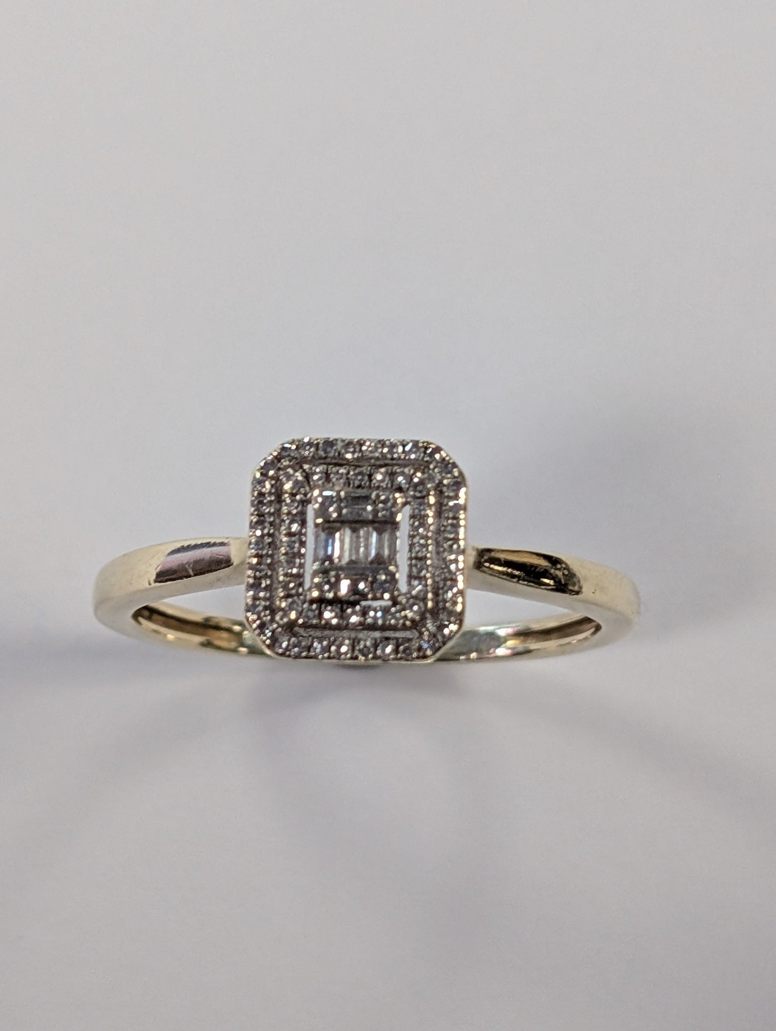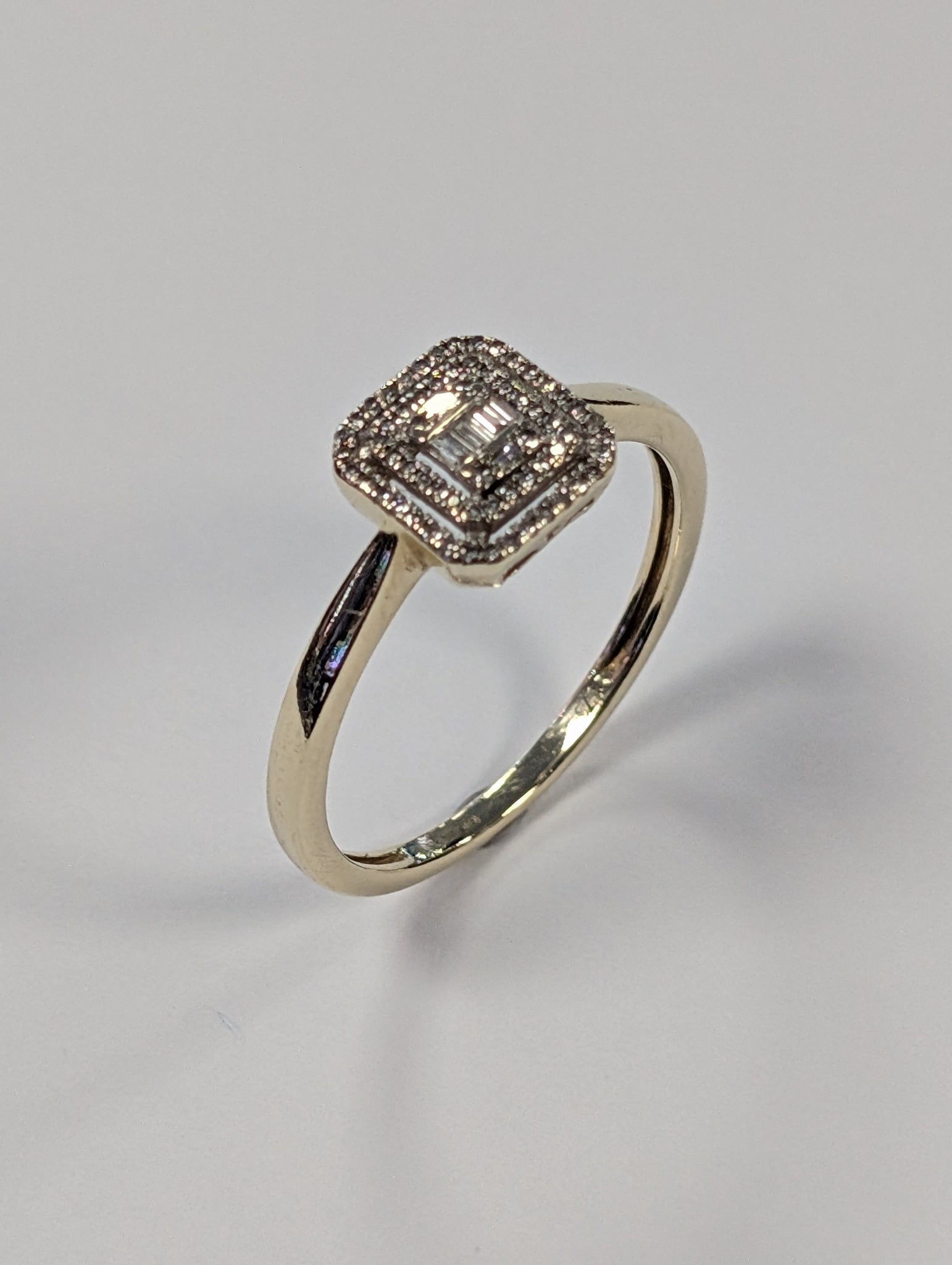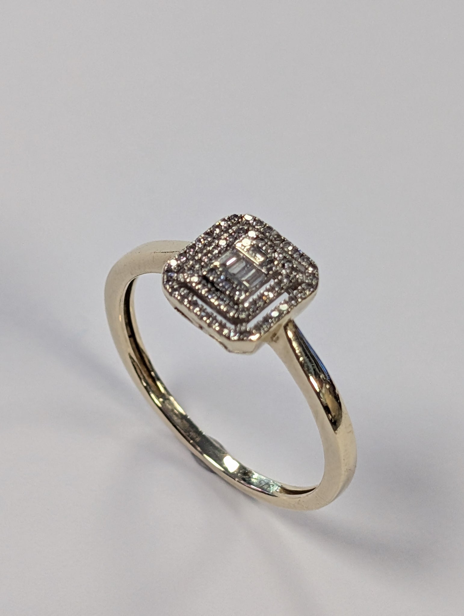 9ct Gold Square Cluster Diamond Ring - Size P